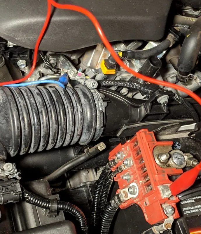 I removed the cover from the positive terminal connection block and connected the positive terminal (orange wire) and engine ground (blue wire) to a 12 volt battery from my lawn tractor. This keeps the electronics 'alive' while replacing the CX-9 battery - that way I don't have to re-program all the settings stored in memory.