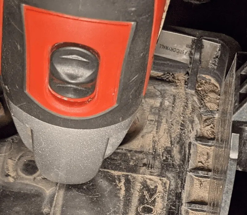Here I'm cutting the protrusion flush with the bottom of the tray. Notice the angle of the blade relative to the tool.