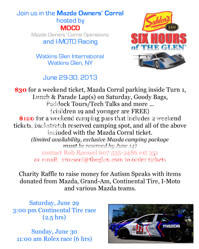 Good morning all! Still hope to see some of you @ The 6 Hour Race @ Watkins Glen and of course LRP! We have possibly a dealership that wants to get involved with MOCO, Compass Motors in Middletown, NY. They have a relationship with Skip Barber we may have a raffle prize from the school.