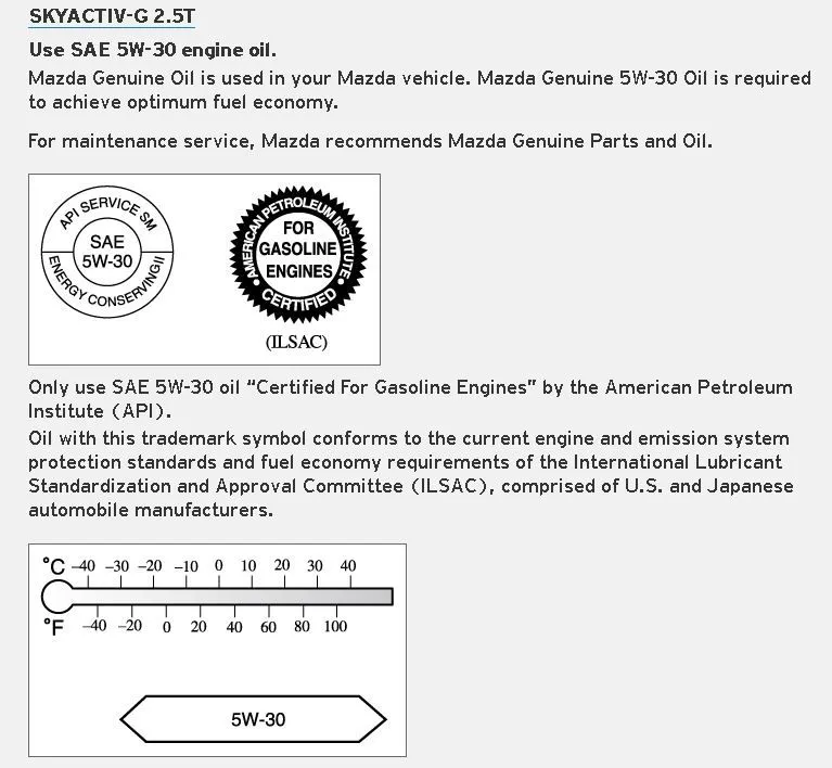 ^ Exactly this. The manual specifies 5W-30 oil for the 2.5 turbo. They messed up and put in oil for the non-turbo engine instead. Contact service manager and GM asap to rectify the issue, and if you get any sort of pushback, go straight to Mazda Corporate. You can cite the Owner's Manual here: