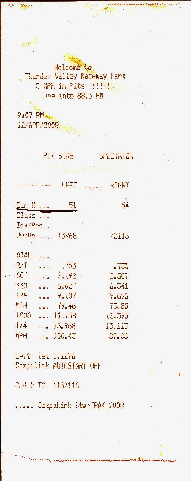 SN - 60ft, 1/8th(et and mph), 1/4, (et and mph) (Mods)ASL (feet above sea level)