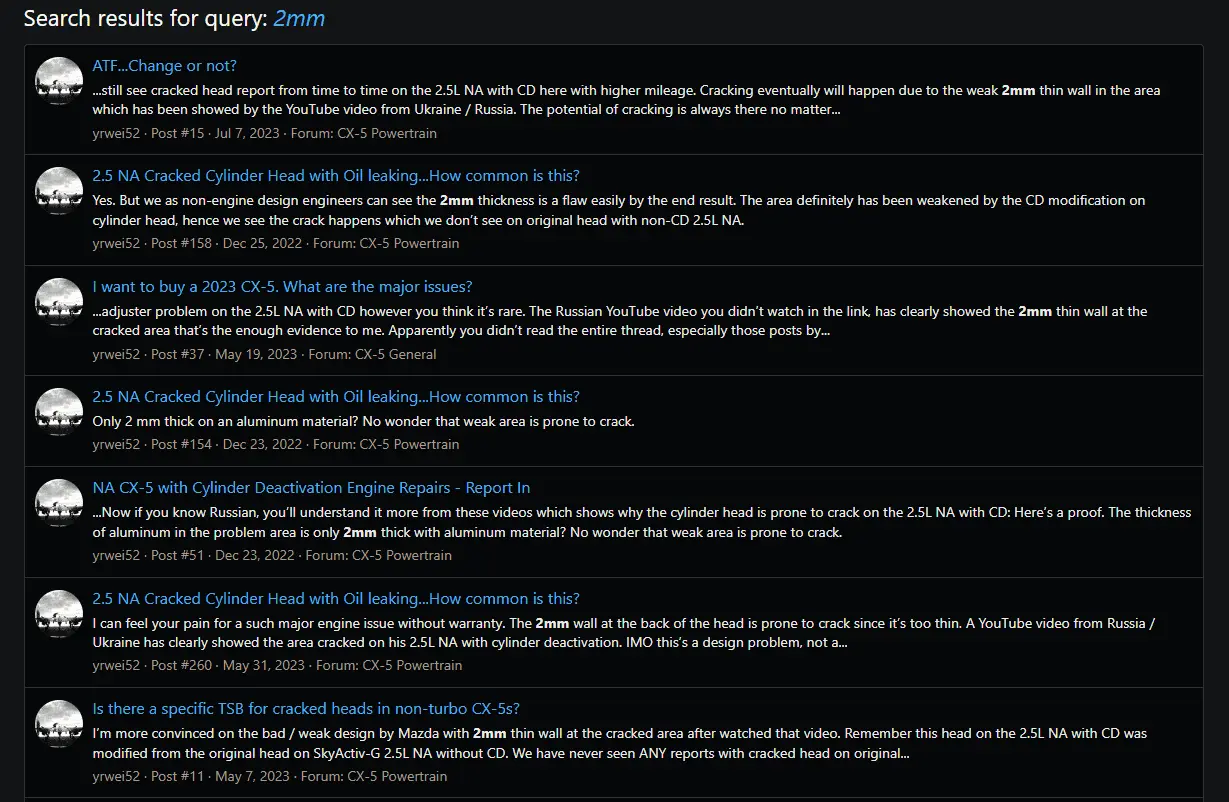 An NA/w CD will out last a Turbo by a factor of at least 2-3 x likely way more --without any major engine work - its just a fact - So Im in for the long haul with my NA - like every other Mazda I have , and they all seem to clock 100, 200,300k without issues? Theres so many ancillary factors & issues not mentioned in here - like on these craked heads ( manily turbos ) - the circumstances on those are not even mentioned here - and Im not going to get into a pissing contest to prove what occured- but saying it was NAs with CD that had the 1/1000th of 1% of craked heads is like saying that airbag recalls on Toyotas .....all had 4 wheels too- ! No Sh-t