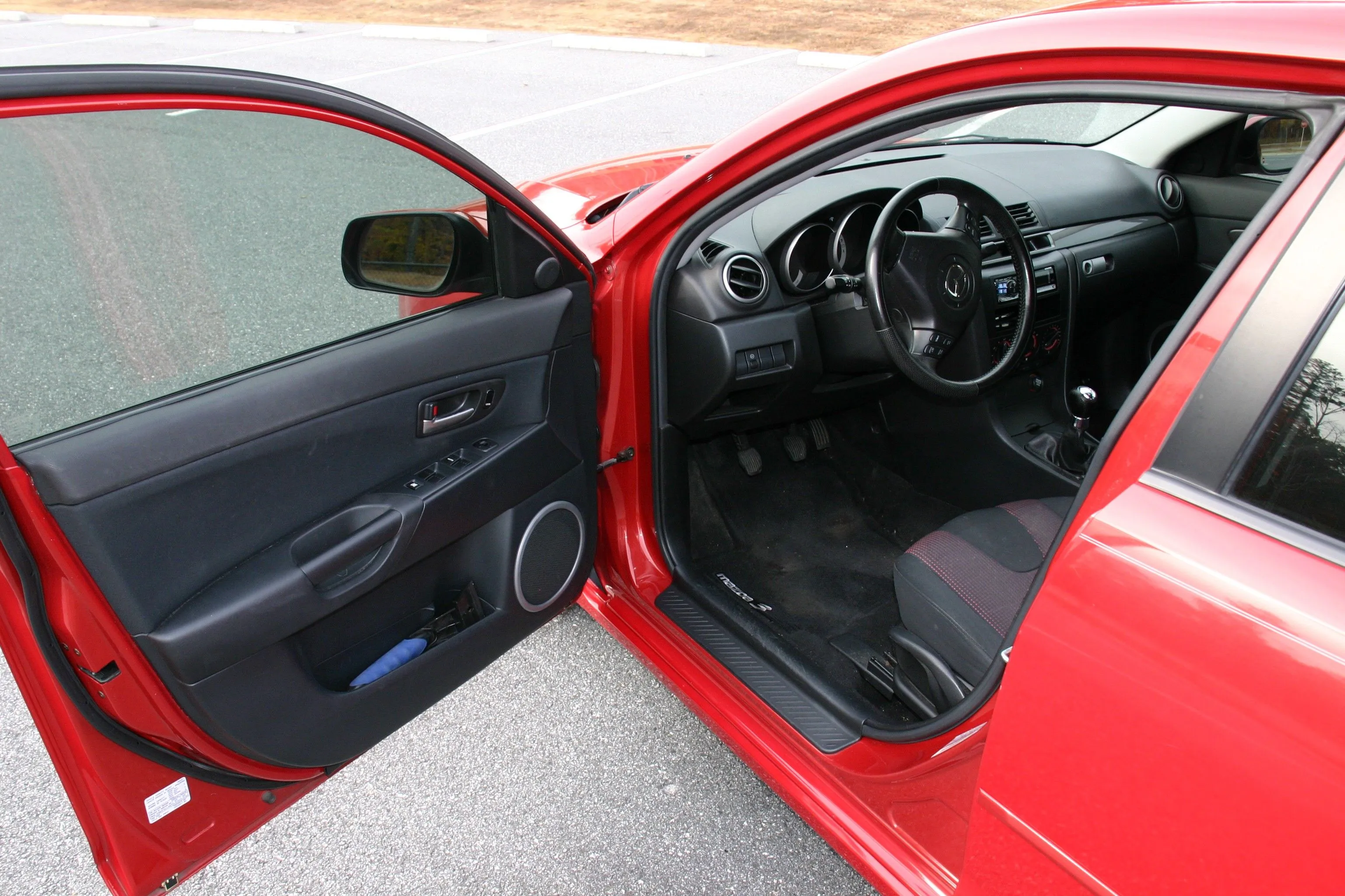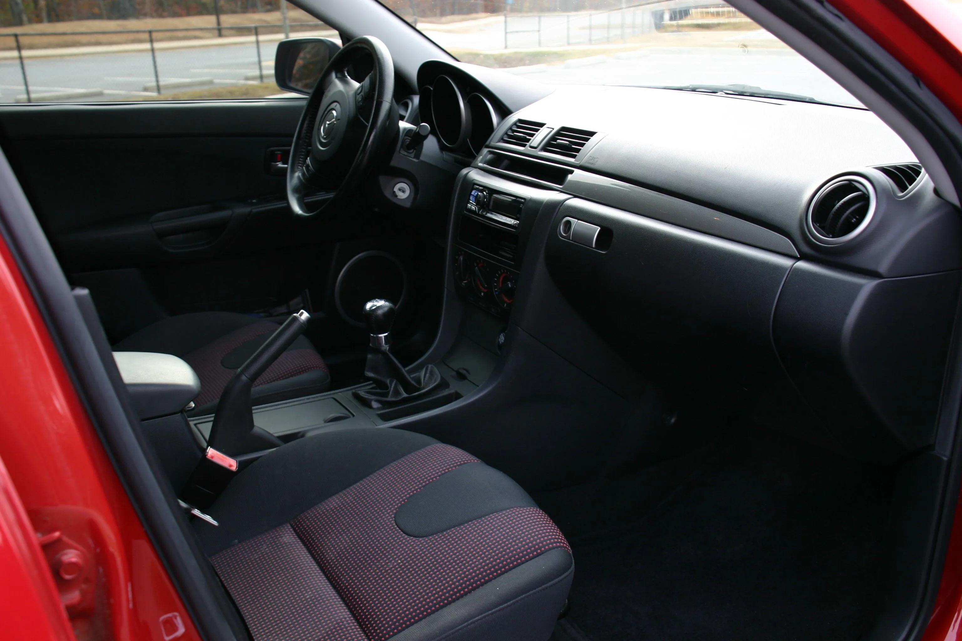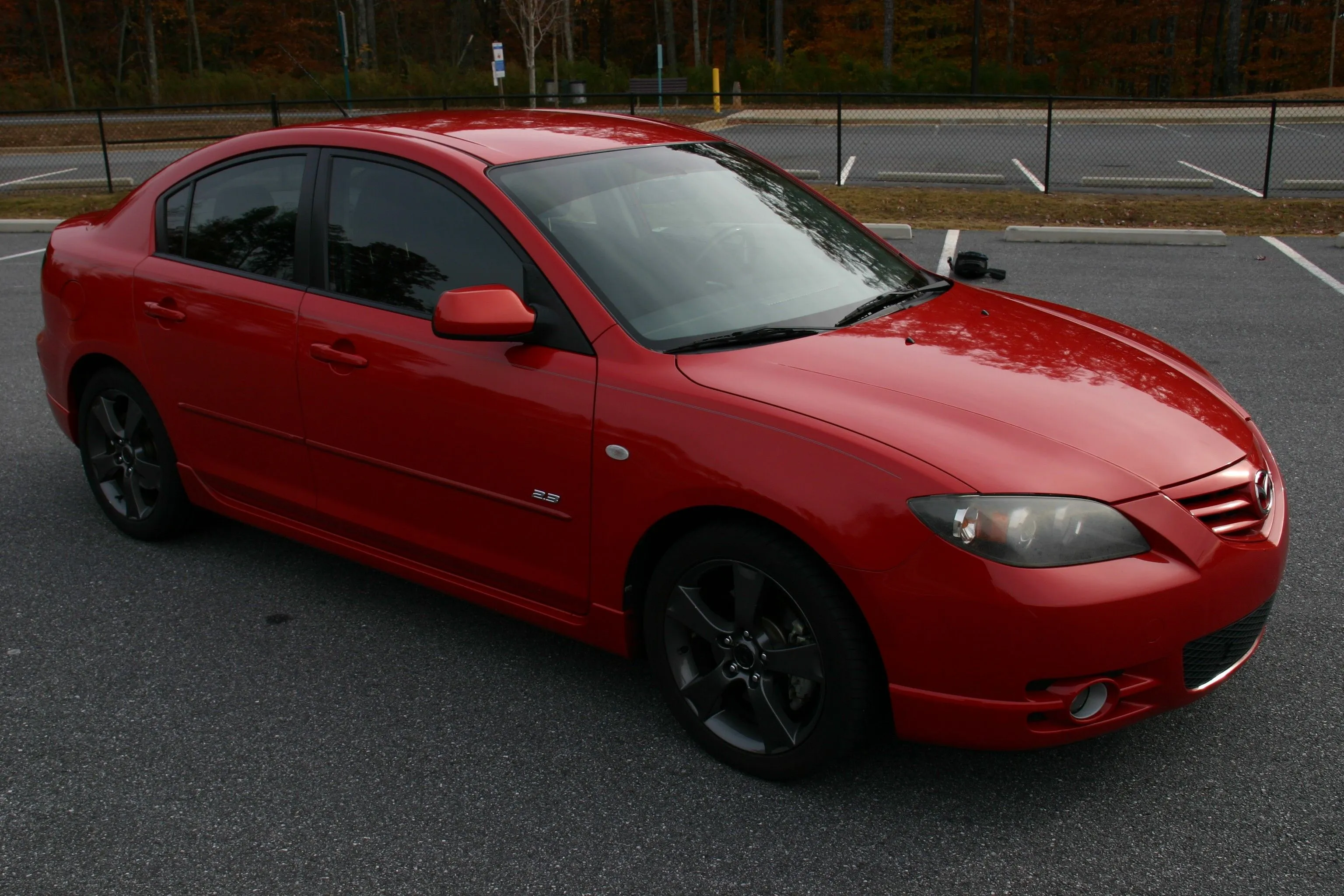 Of course, I don't have to tell anyone here how great the Mazda 3 is. With the 2.3L engine and 5 speed manual, it's a blast to drive, yet is practical and has been completely reliable for me. It has the rare Velocity Mica Red paint, smoked factory wheels, and an overall blacked out look. The seats have coordinating red stitching and are NOT leather; I think the fabric seats are good as you don't have to worry about cracked leather. The vehicle has 116,000 miles and all the standard amenities: a/c, power windows, power locks, cruise control, tilt wheel, etc. There is an Alpine cd player, Kicker 4 channel amp, Infinity front speakers and Kicker 6.5" subs in the rear doors. Rear tires replaced a few months ago.