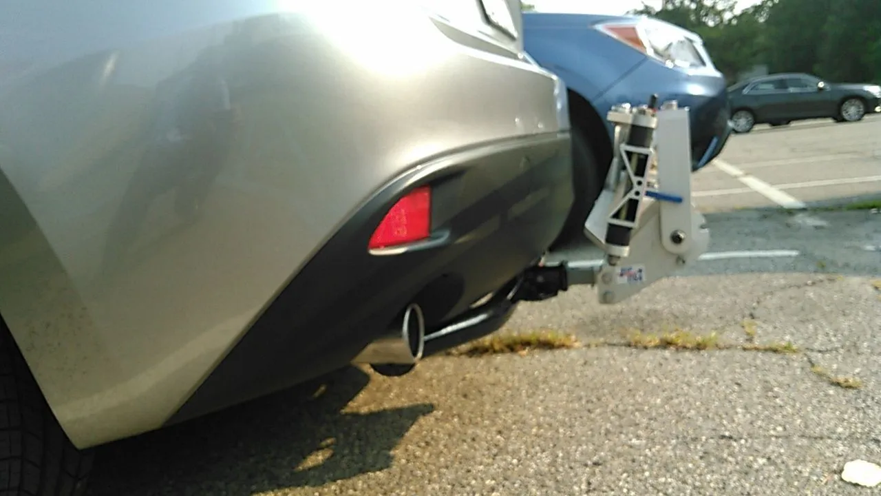 It is difficult the tell the difference with the angles that the pictures are taken so I'll try to explain in words. Based on what @Goalieman said it sounds like the hitch is set further up into the rear of the car more than mine to the point of the back of his hitch is touching the back of the muffler. Since the muffler is mounted on rubber mounts, as the car bounces around the muffler will bounce off the hitch. With my hitch it is separated more from the muffler. Meaning my hitch sticks out the back of the car more. In the side view of my hitch you'll notice that there's nothing right behind it. I took my other car to work today so I can't take a picture of the bottom of the car but I think you get the jest of it.