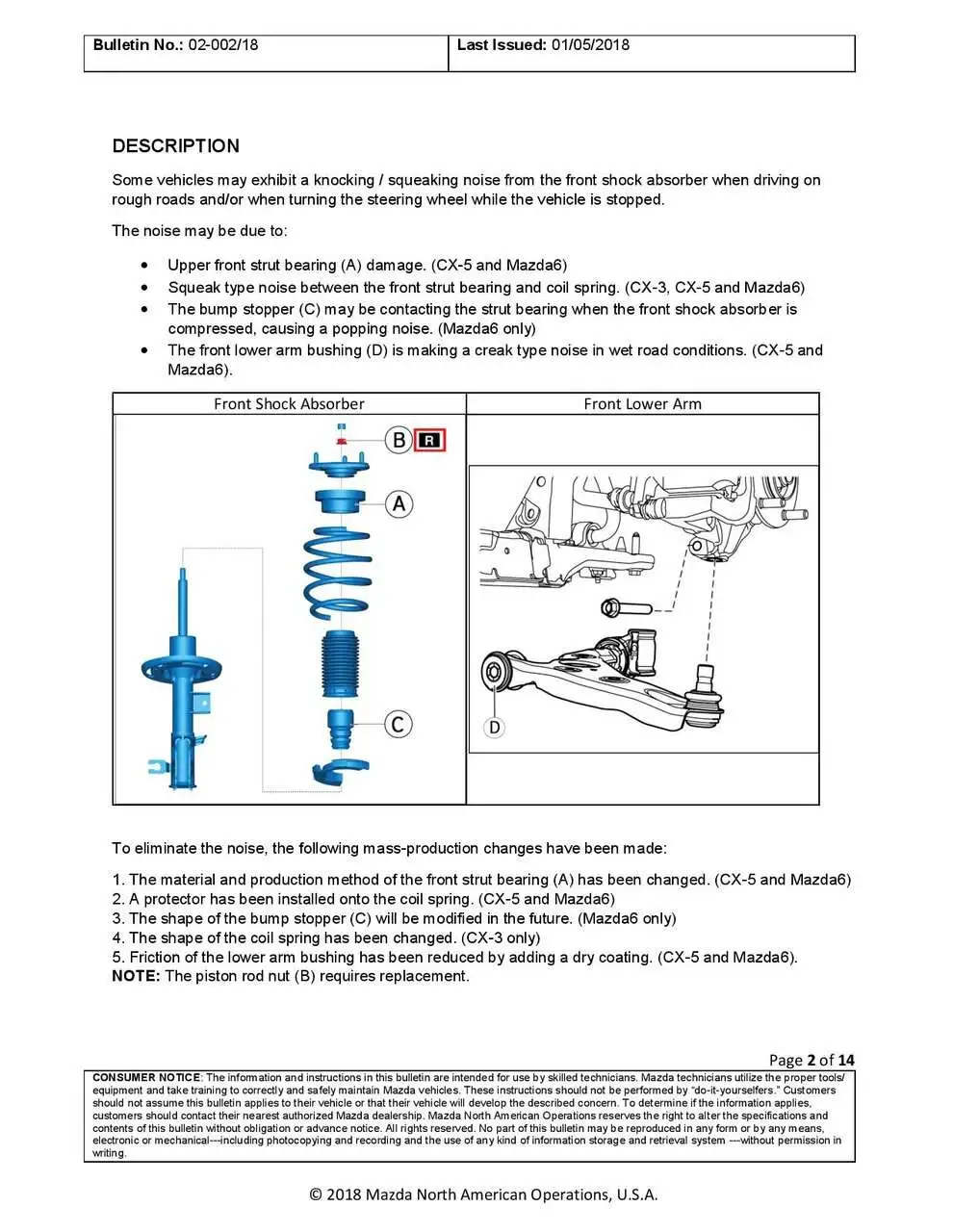 If you end up replacing the shocks and struts, I was very happy with the KYB complete strut and shock assemblies. The only drawback to the KYB shocks is that they will not come with a new mount. I think only the Mazda OEM shocks come with the mount. I was able to reuse the old mounts on my ‘13 but they were still in good shape.