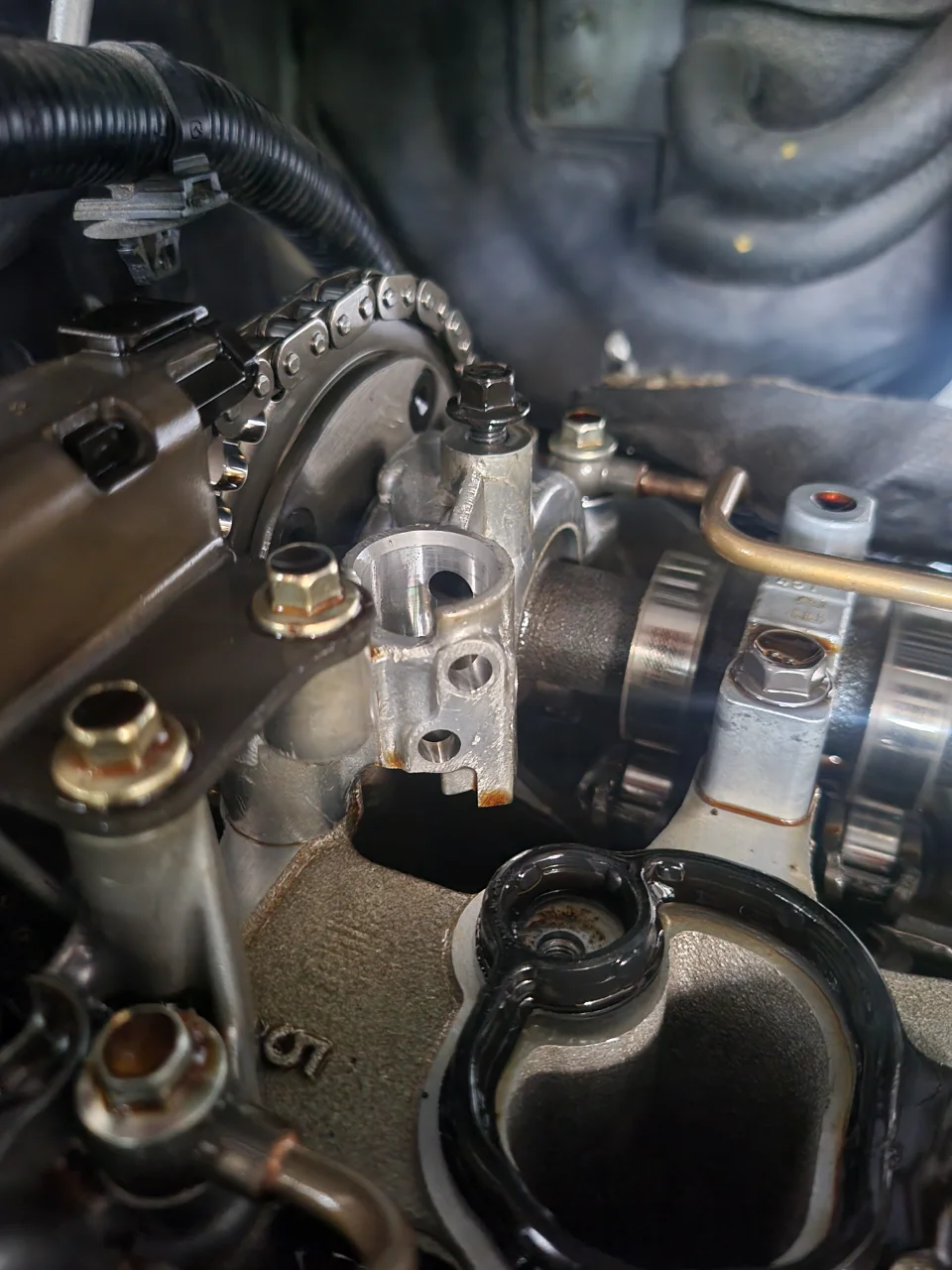 Today: ran to autozone to get the only crank sensor in stock. No improvement. At this point worried about timing maybe being off?? Pulled the valve cover to inspect. In doing so, I unfortunately broke the plastic on the VVT solenoid so I will replace that. Timing at TDC looks perfect with a tight chain and no visible wear on the guides, cams look good. There were a couple of scratches near the solenoid. I will post a picture if I can.