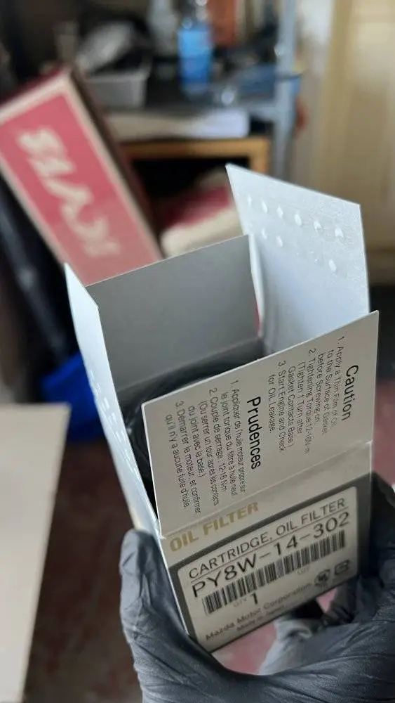 The oil filter from factory on 2.5T is Japanese made Tokyo Roki PY8W-14-302. Unfortunately Mazda North American Operations have stopped supplying PY8W-14-302 since Dec. 2019 and it’s superseded by Thai made Denso 1WPY-14-302.