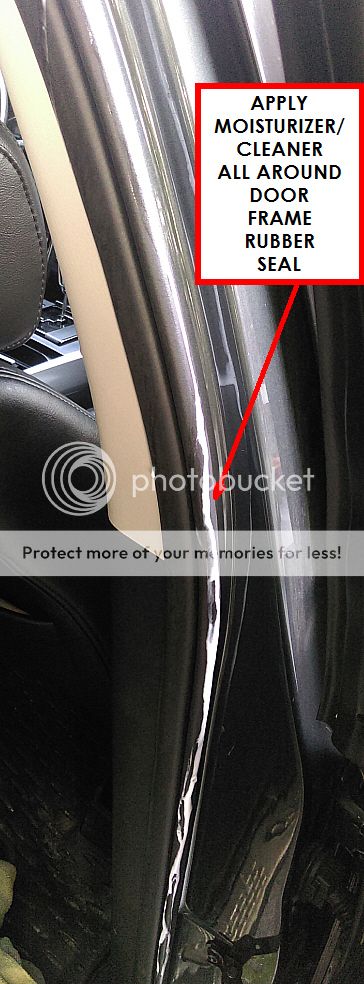 I ran the Meguiar's protectant all along the door AND frame seals on all four doors then wiped it with a microfiber towel, while I was doing this I noticed how dirty, dusty and dry the rubber seals were, and thinking to myself maybe my buddy does know what he's talking about...