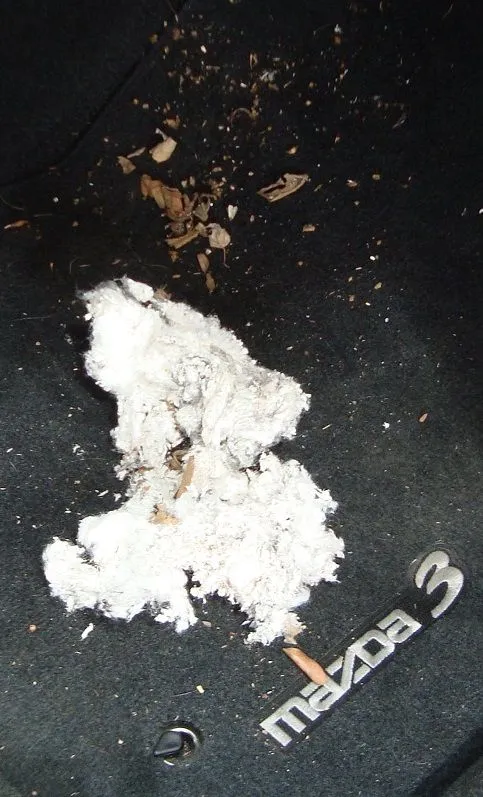 in the heater using chewed fiber from the cabin air filter, and
