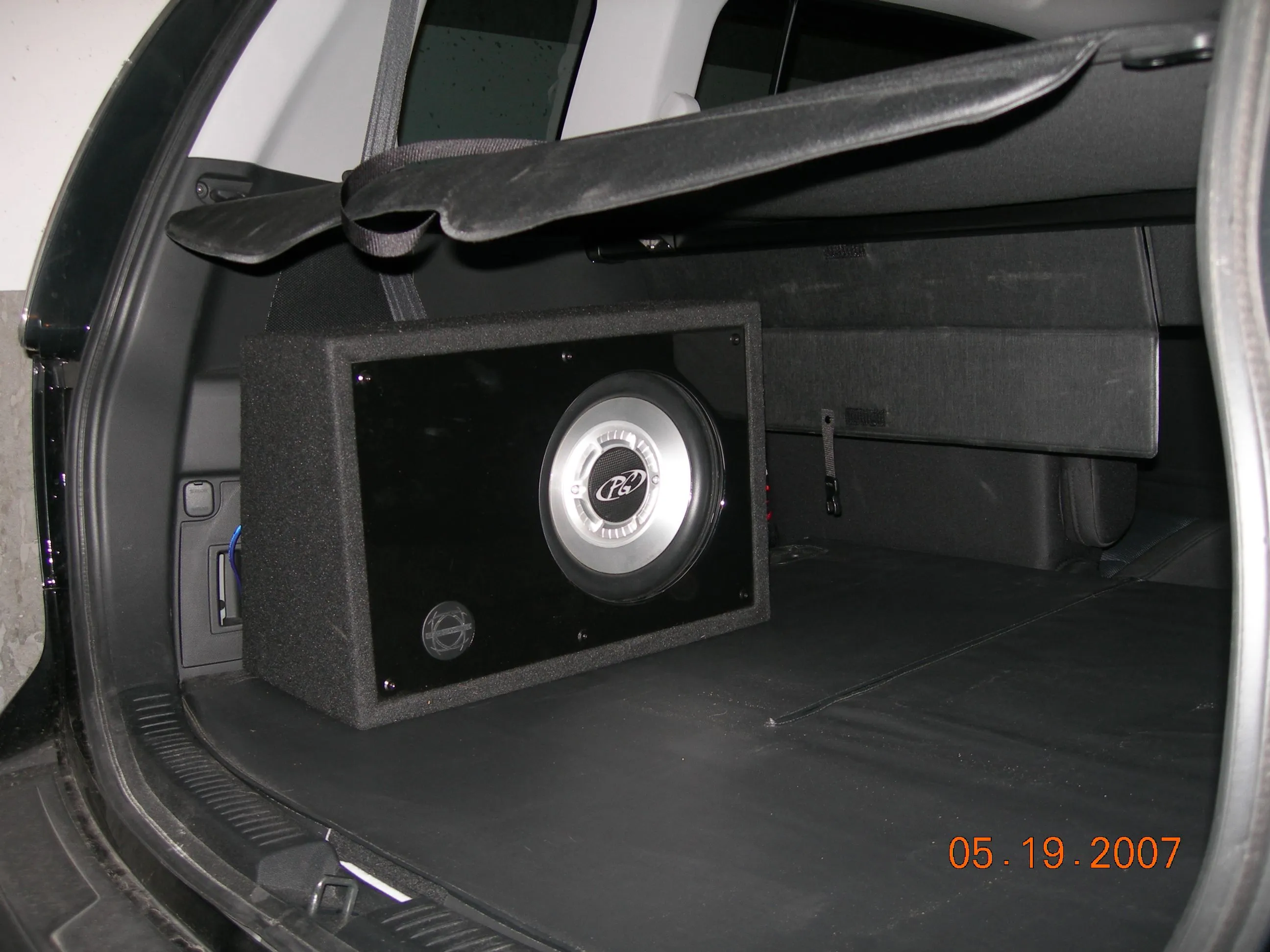 Whole set up cost $700 Cdn. for sub, box, amp, wiring kit, line out converter, cables, and labour. Also installed the varad scanner to my rear view mirror included in the price above. Everything is well hidden with the cargo cover. Can adjust the positioning by folding down one 3rd row seat and shifting the sub box 90 degrees.