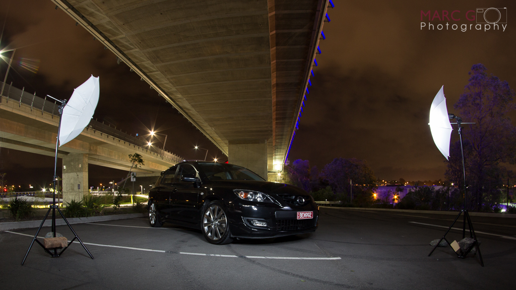 As it is raining at the moment, I sat a light stand in the garage aimed at the front of the wagon, and the had a seperate flash in the centre console, turned out better than I imagined
