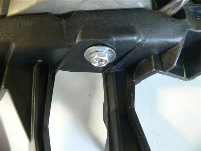 Anyway, then put the whole thing back together, leaving the screw on the bottom of the frame loose. Then aim by moving this screw back and forth to get the vertical alignment you want. To do the aiming, I waited until after dark, then put a blanket over the headlights so I could see the pattern of the fogs on the wall.