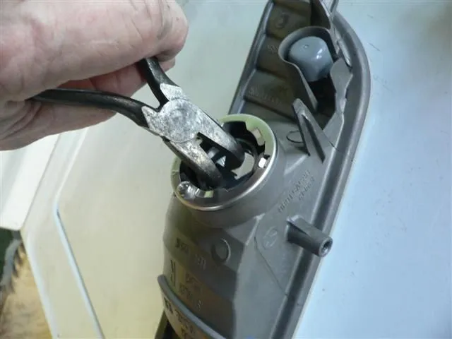 Way #1: Get a pair of needle nose pliers and reach into the hole and start bending the s*** out of the metal shield. It is made out of amazing metal that bends and bends and bends before breaking. You need to keep flexing until it does break, or manages to come out from under the screw holding it. One of mine came out from the screw and the other finally broke. You need to take some care doing this because the reflective material inside the light scratches really easily. A few scratches won't make a big difference but you don't want to make a real mess of it. Once the sheld is loose from the mounting, you have to get it out of the hole. It is helpful to have two pairs of needle nose pliers to bend it into a shape that will fit out of the hole.