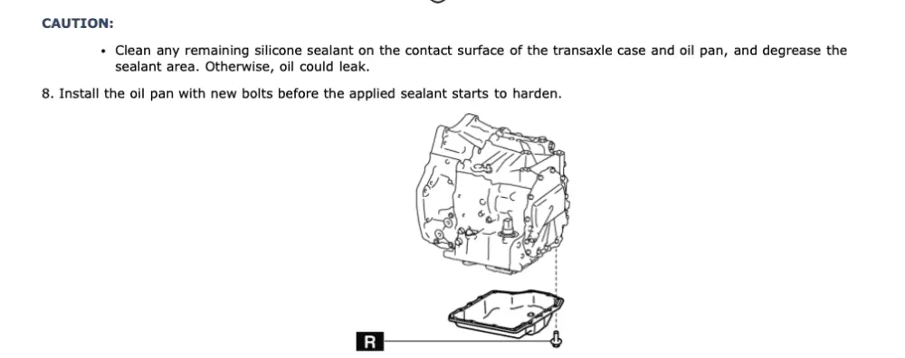 While FSM says "Apply a light coat of silicon sealant (TB1217E or equivalent) to the contact surfaces of the oil pan and transaxle case. "