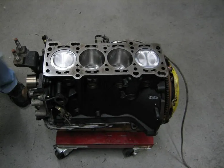 Engine got back yesterday from the machine shop and is already back in the car tonight with the tranny, just waiting on the head. Head is gonna get a three angle valve job and a acid wash I think its called to remove 120k of gunk and also have new seals and what not put in so its ubber new again. Work has been done SUPER fast. I can't complain on anything. Here are some shots of all the engine and what not.
