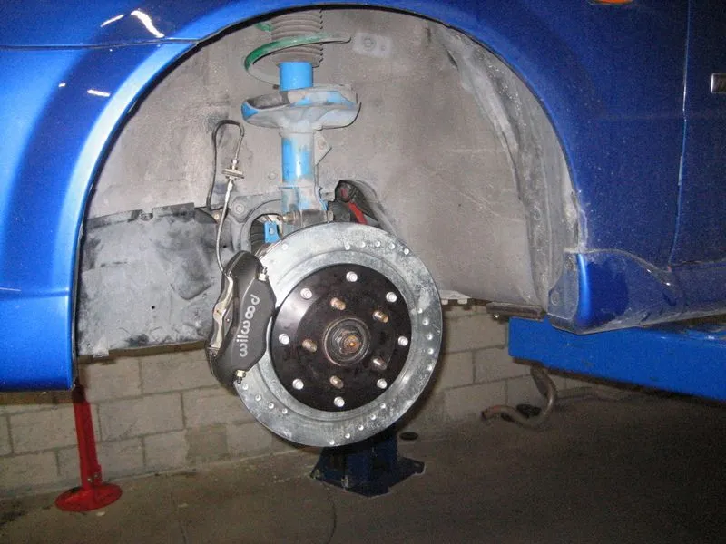 Some before and after shots. Definitely made a big difference. NO brake fade for street driving. Did a few stops from high speed and didn't feel the brake fade I used to on the old setup. I also went ahead and redid the rear brakes to match the front. Used to have the yellow now all black. Slowly she's starting to look prettier, black and blue, like some bad bruises. (naughty)
