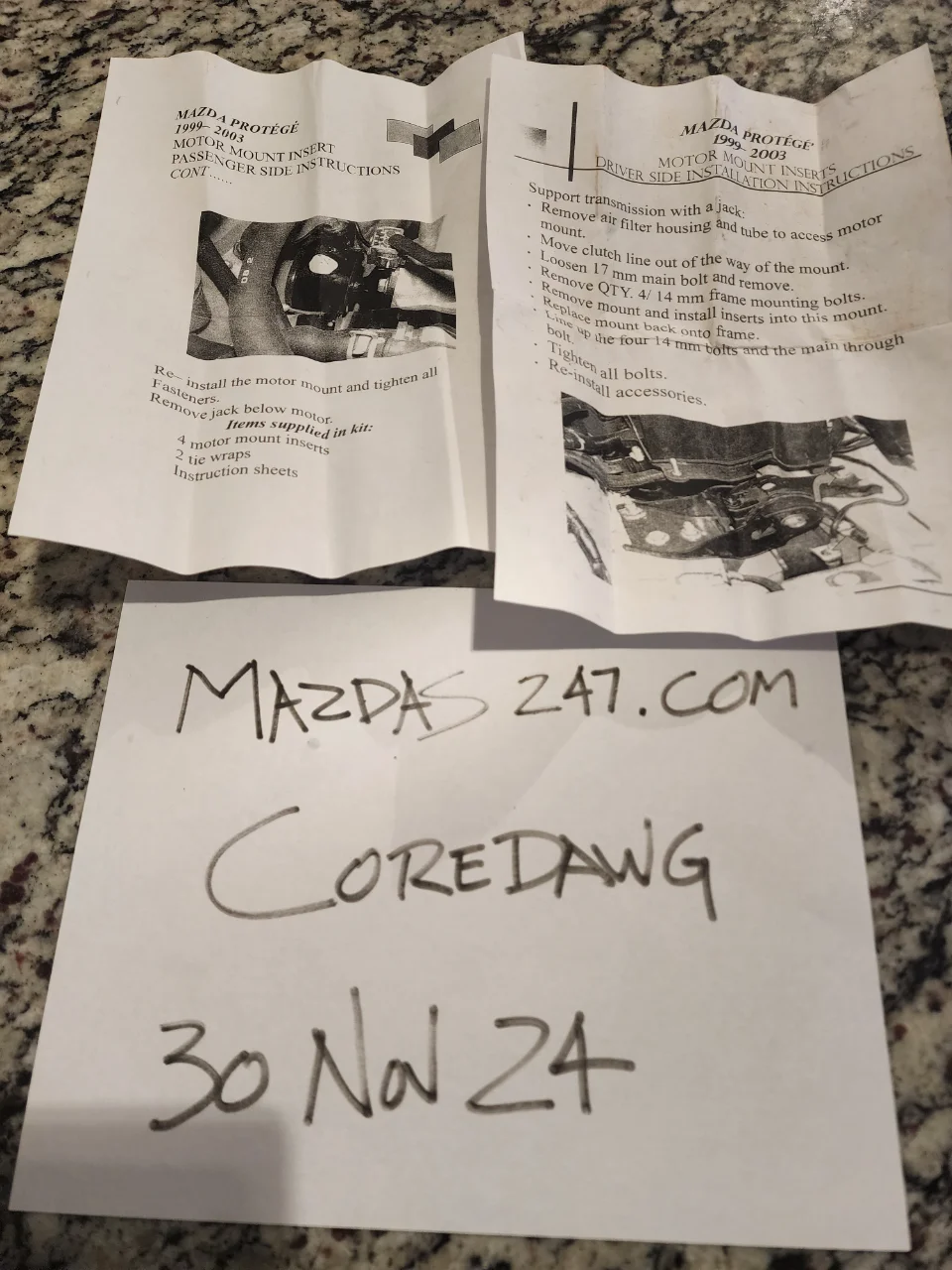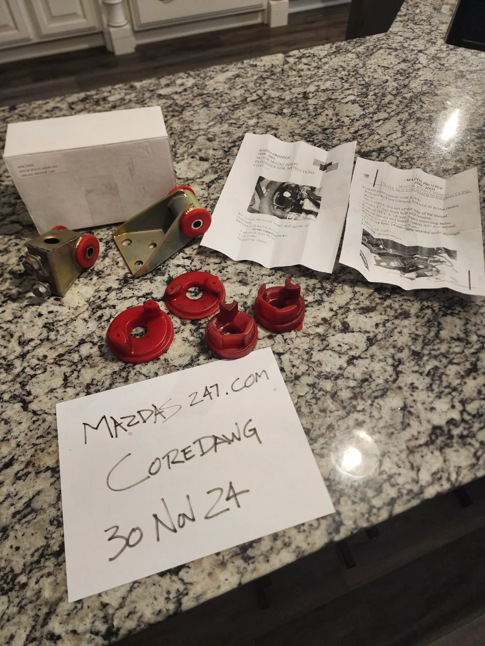 I have an AWR 3304 motor mount insert kit for sale. Used for a short time only, hence they show a little dirt. Front and rear mount brackets and inserts for driver and passenger side. 99-03 Protege/P5, maybe others. $100 OBO
