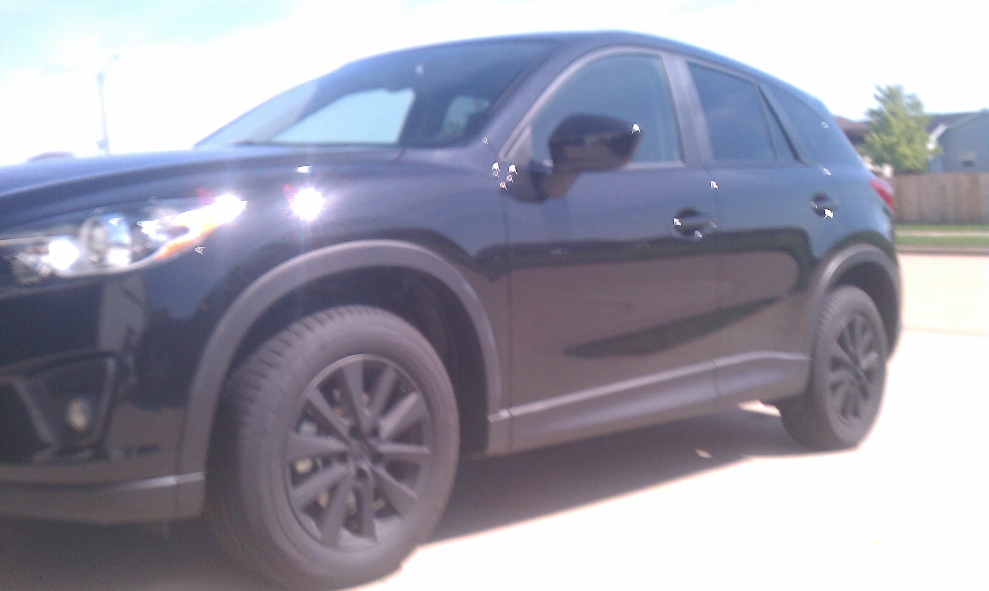 There was a previous suggestion to use Plasti- Dip and I love it. I've never had a Black on Black so I wanted to see how it looked before purchasing a new set of rims. I went the plasti-dip route and it looks great! Everyone asks me if they are aftermarket because I just purchased my CX-5 but it's amazing how easy it was to plasti-dip and how nice the rims actually look.