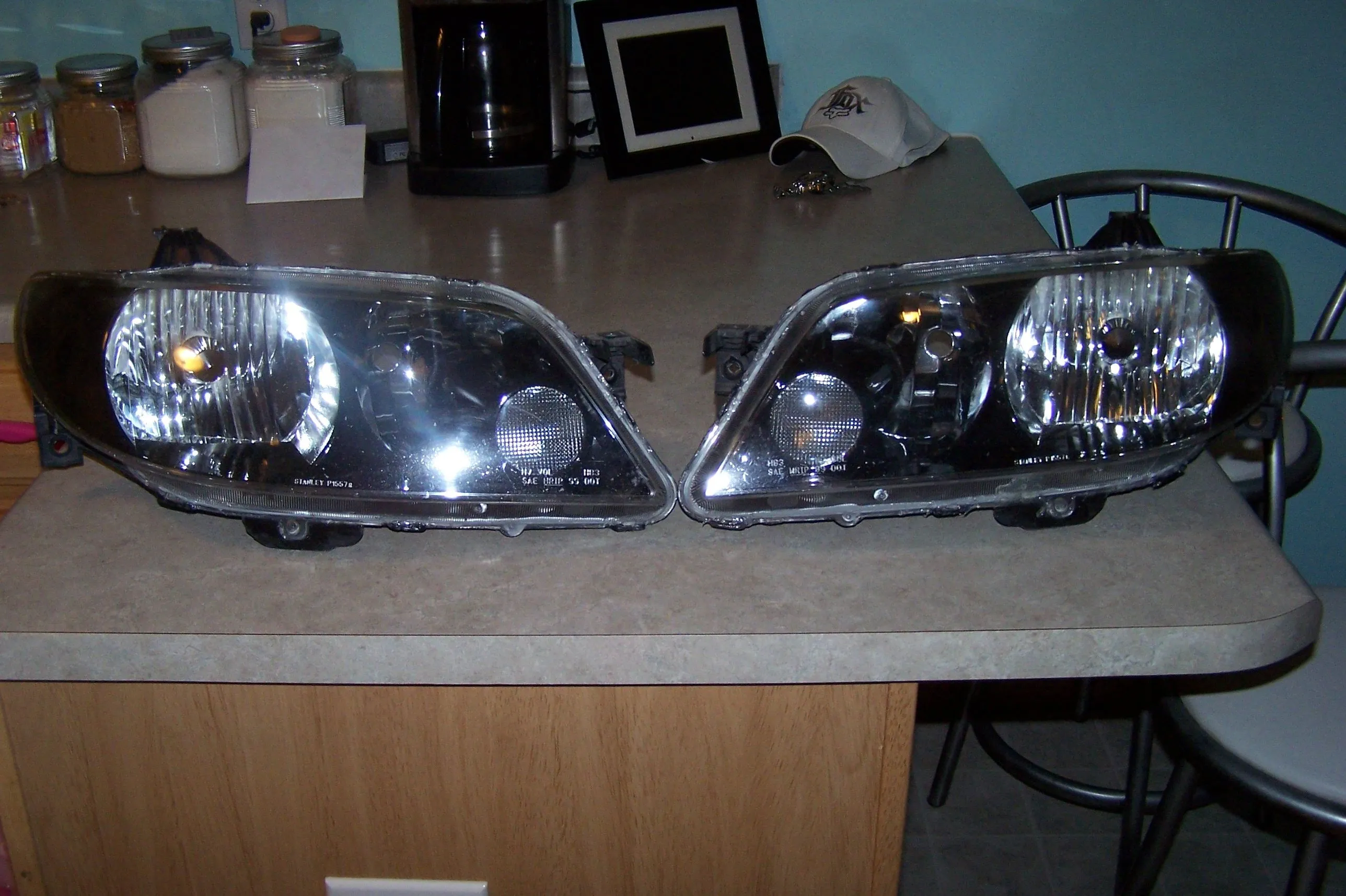 Well I finally did it. blacked out the headlights. Heres some pics. I still need to get a pic of them on the car. Now I need to recondition the lens part. But I did them! Went with High gloss Black, kind of go with tail lights.