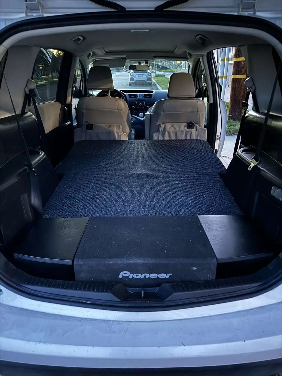 This is my first post. I just picked up my 2012 Mazda 5 touring last month. It’s got 89k mi and needed a new tcm. I’ve done all the repairs and wanted to build a cargo cover and fit a pioneer shallow 10in sub box that I already had from another car. I built everything out of 3/4 Baltic Birch. The cargo cover is covered in boat carpet and hinges up to use the middle seats. I still have to wire everything.