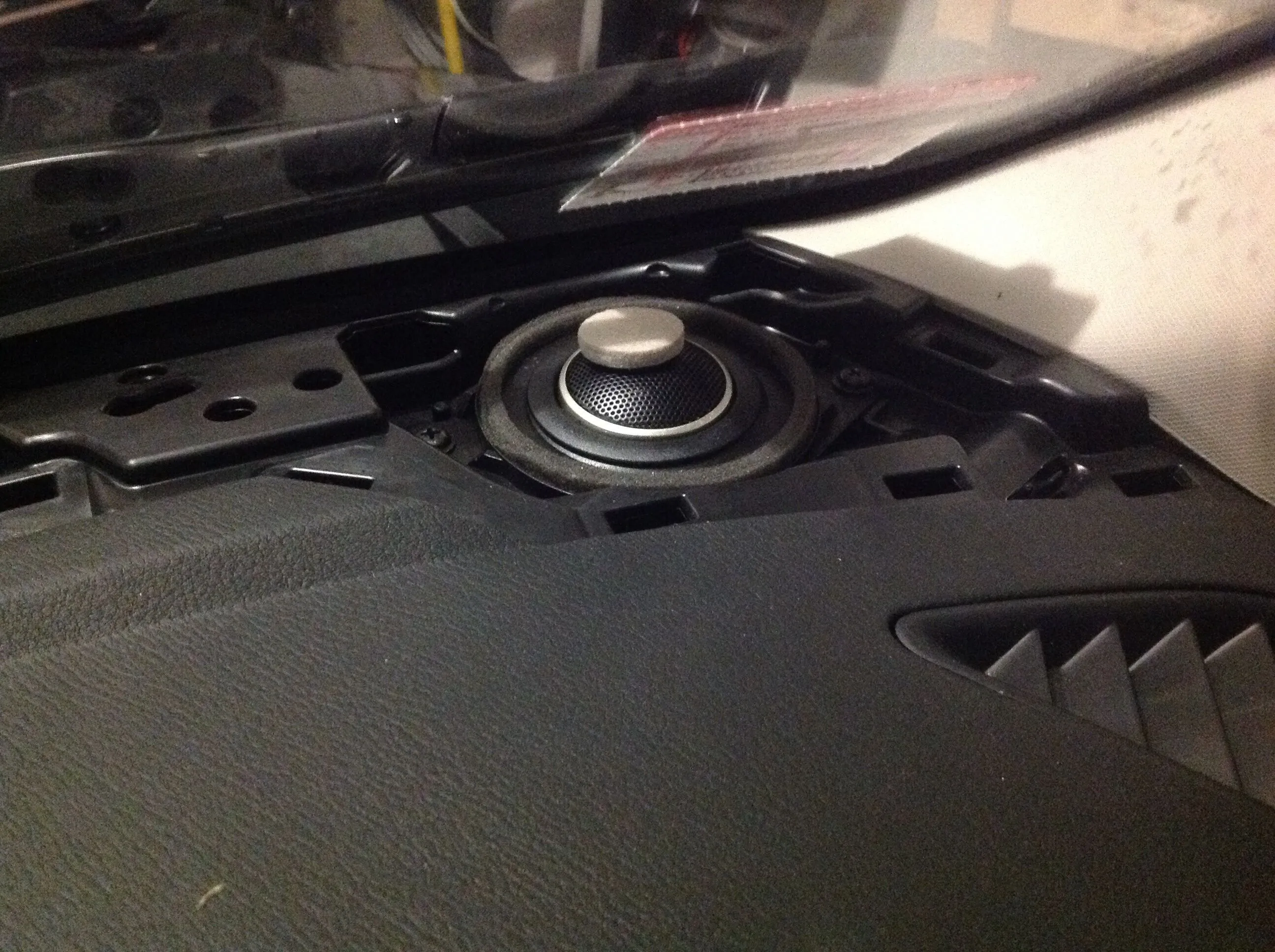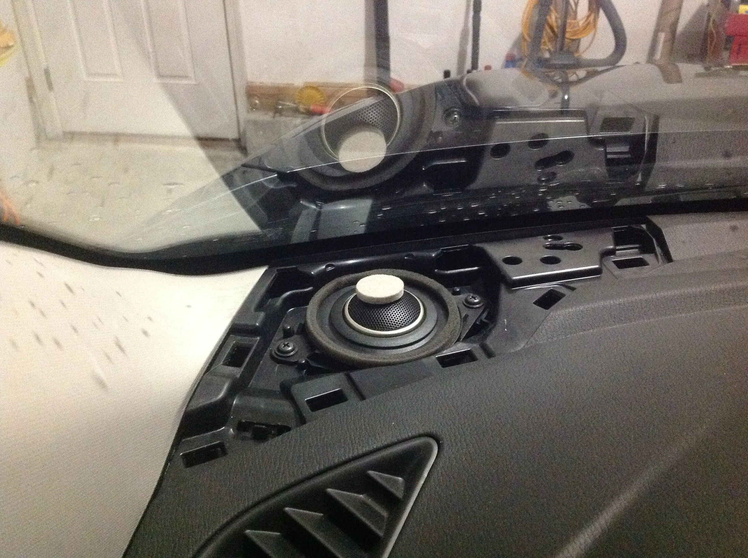 I added some felt floor protectors to my Polk tweeters to tone them down a little bit. I got this idea from the Snell Acoustics type A speakers I sold where they used a piece of felt covering half the tweeter to I assume make them sound warm. These are the 1" tweeters from the Polk 6500 series component speaker system and even with the crossover set on the -3db setting they were just too harsh/strong for my liking. After adding the felt they are much easier to listen to and it cost me nothing to do since I already had them in the house.