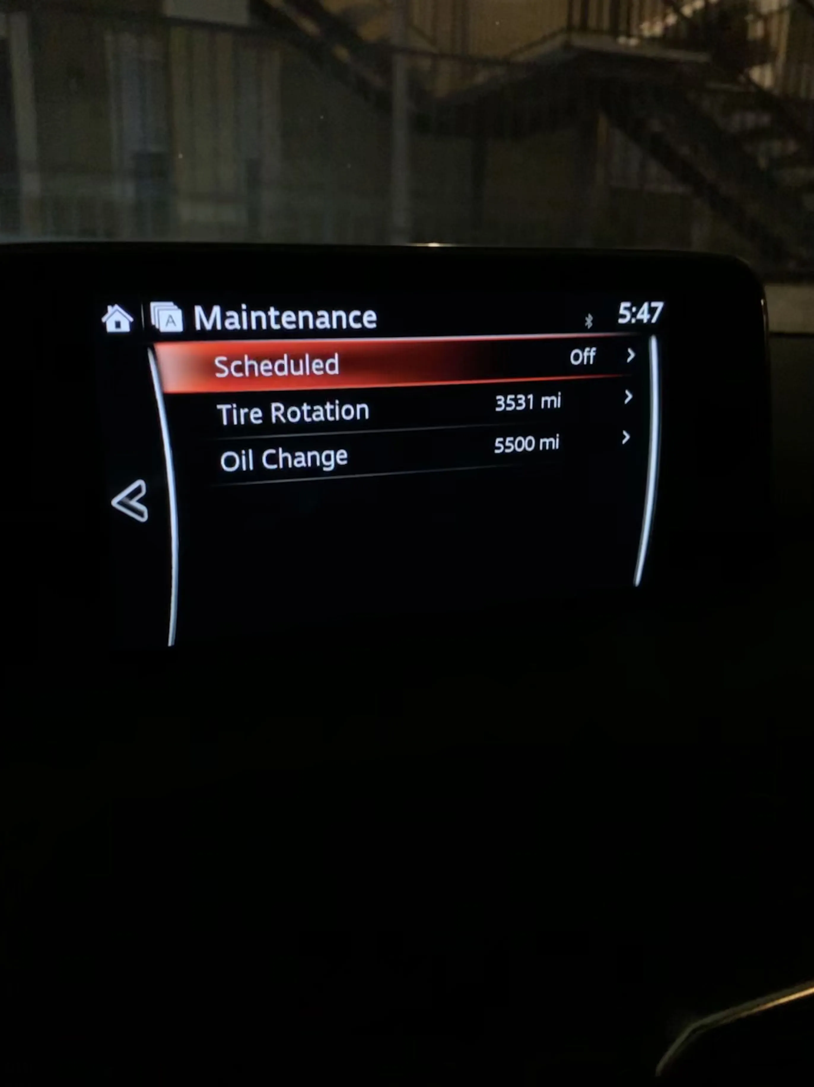 The reset should be able to be done in infotainment system. But what is each mileage displayed for "Scheduled"、"Tire Rotation"、and "Oil Change" in "Maintenance" category under "Vehicle Status Monitor"?I have done this with mine and continue to see the "Service Past Due" message every few startups. I've also performed the IP stalk button reset procedure (showed the flashing yellow warning triangle).