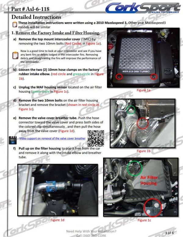 As you can see, the pictures are full color with easy to find call-outs of key items and steps. In addition to coming printed out with every CorkSport part, you will find them easy to link to on every product page and easily viewable on any computer, tablet or phone. Just one more way that CorkSport has your back!