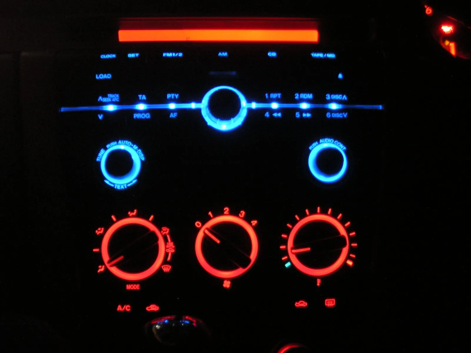 With that in mind i saw all the LED's there and thought it would be fun to change them to blue. I think im going to keep the A/C unit all red and the LCD screen red, as mentioned i am doing the cluster with the dials in soon.