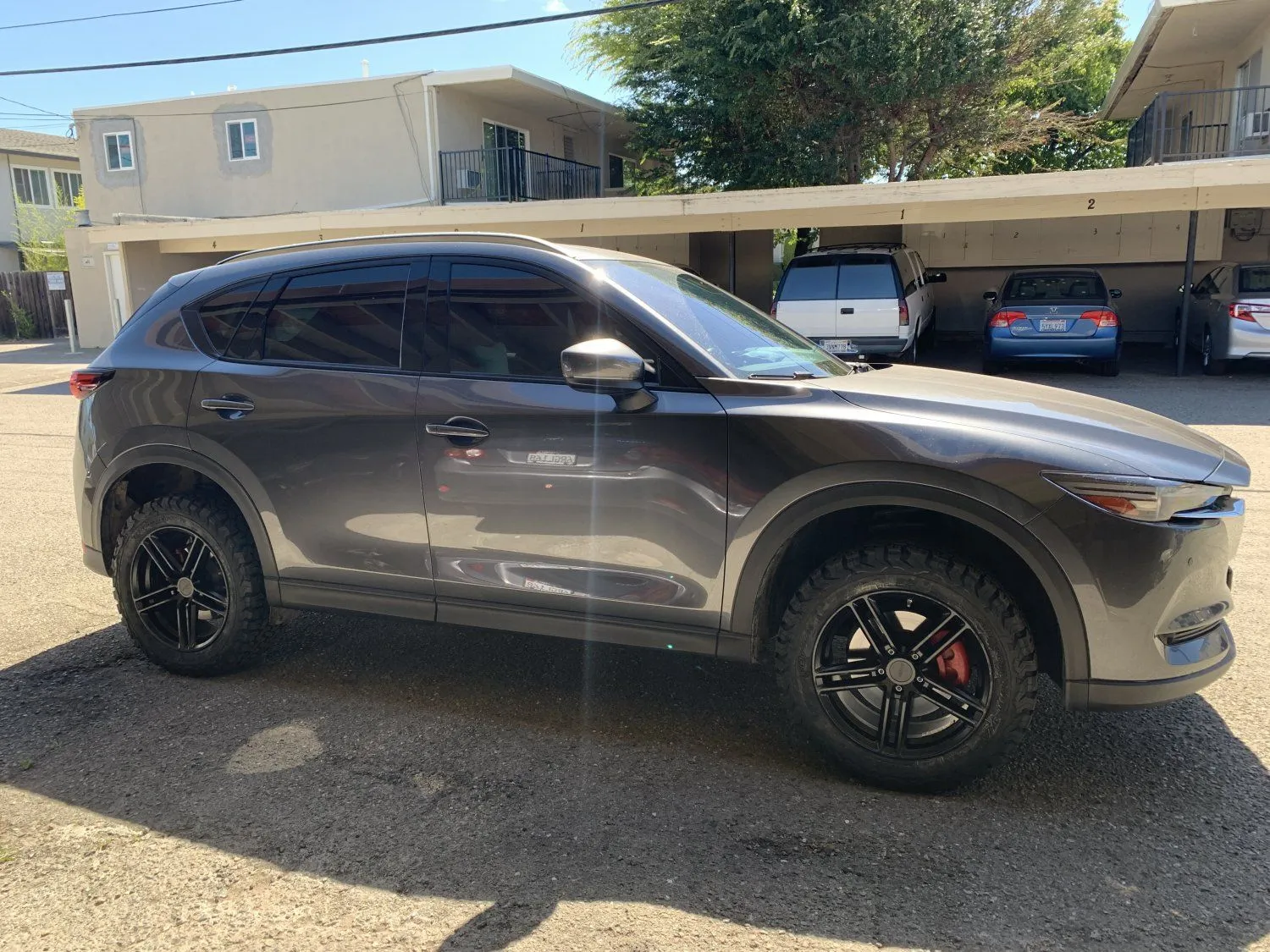 No rubbing. Road noise coming from the tires did increase but it's not intrusive or annoying. I notice CX5 has a very effective noise insulation because though I can hear the increased noise, it's still pretty quiet as I can still listen to music with perfect clarity. It's like the insulation is just blocking a particular range of frequencies that actually make hearing music, having conversation, etc difficult.