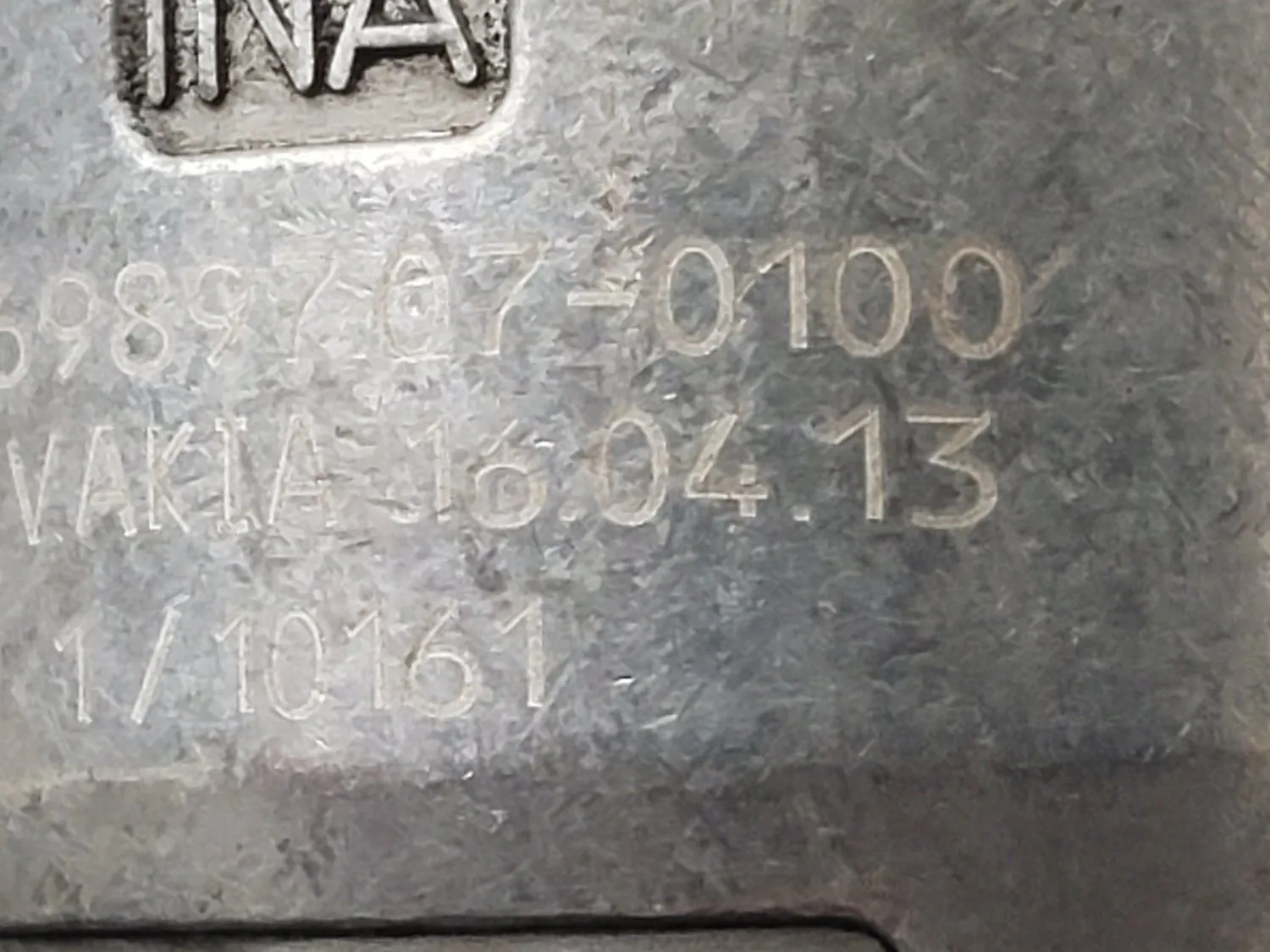 OK, so I was mostly successful today. I went through the wheel well again. Once I realized how much force was needed and how slow the tensioner would move (courtesy of those videos) I was easily able to relieve the tension and remove the serpentine belt. I used my long-handled 17mm ratcheting wrench from below for this. The new Harbor Freight wrench serpentine belt would NOT fit in the cramped space. Since I was going to replace the water pump belt too, I took that off. However rather than use the "towel" method to pull it off, I cut it off like CX-5um suggested. Easy, right? Big mistake; more on that later. Next I was able to use a short-handled 12mm box wrench to take off the top nut from the top but I left the tensioner still hanging on the threaded stub. Then I used my long-handled 12mm ratcheting wrench from the bottom to loosen the bottom bolt. Due to clearance issues I could only back it off a turn or two, but I got it loose which would be really hard to do from the top. I loosened the bolt some more from the top with the short-handled 12mm wrench using the open end side. After a point I was able to loosen it the rest of the way by hand. Very tight quarters though. You can't pull the bolt out because there's no clearance, you just loosen it until it's no longer threaded. Then from the top I rotated the tensioner toward the front of the vehicle to free the bolt from the slot in the engine casting (there's a picture below of the slot for the bolt) and THEN pulled the top part off the threaded stub. A little bit of maneuvering and it came out from the top. It really wasn't oily, just dirty. A lot of the dirt came off just in the removal process. I've uploaded pictures of the whole unit front and back right after it came out. Then I cleaned it up and took pictures of the 2 sets of numbers that everyone wants to see. The new one went in easy-peasy using all the same tools and positions as the removal. No way to tell how torqued the nut and bolt got, I just made them tight.