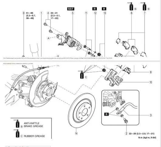Like theblooms, I usually use OEM brake parts as most of time the OEM brake pad kit comes with all the necessary hardware and grease (not on Mazda though). You may want to get new shims、guide plates (springs)、and rubber dust boots (for slide pins as those are marked “R” in workshop manual).