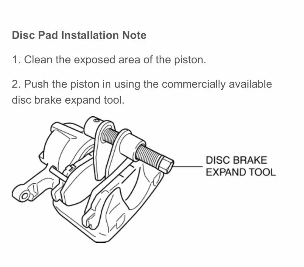 push and turn rear caliper pistons making enough space for new pads. Watch the brake fluid level in brake fluid reservoir on brake master cylinder as brake fluid may be overflowing while you’re pushing the piston in. Some suggest to release the caliper bleeder valve to let the brake fluid out when you push the piston, but I’ve never done that way unless I plan to change the brake fluid in the system after the brake job. You can rent special brake tool set (especially for your rear brakes you need a special tool to “push and turn” the piston) for free from AutoZone.