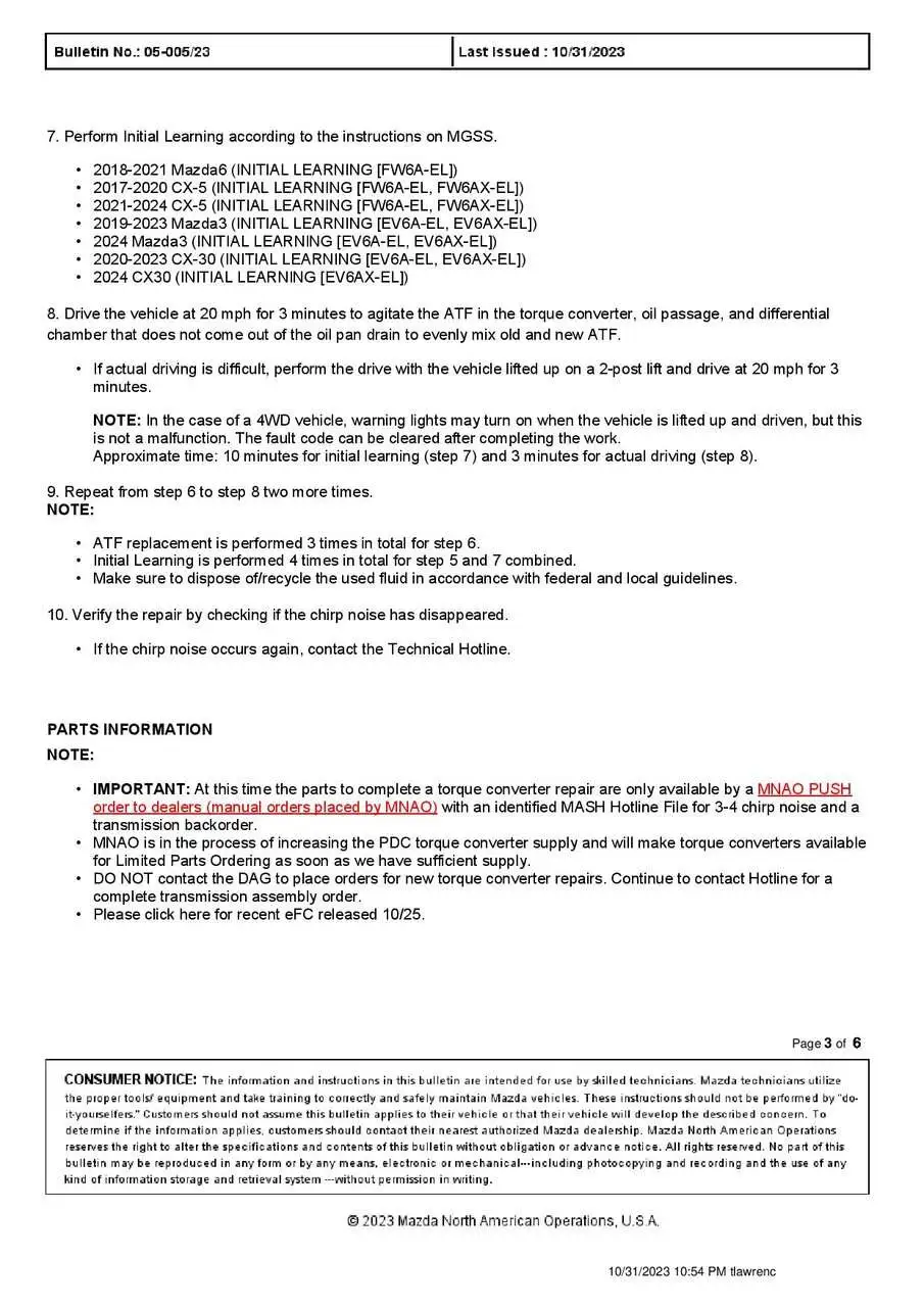 2019-2024 Mazda3 (2.5L with cylinder deactivation and 6AT)