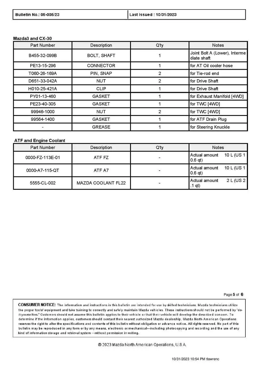 2017-2024 CX-5 (2.5L with cylinder deactivation and 6AT)