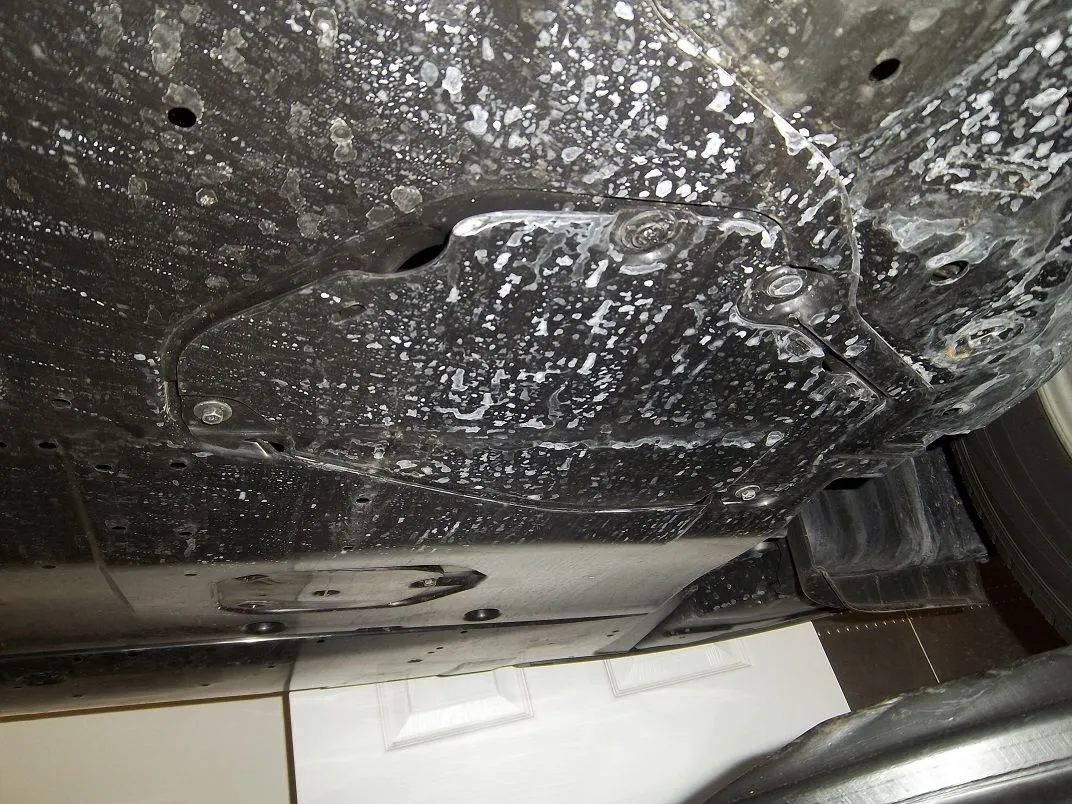 Reinstall door by bowing the door and sliding in all the tabs into place. next reinstall bolts and pushing in plastic rivet. Next open up oil filler cap and fill 4.4 quarts. Close cap then start car. Stop car and check oil level.
