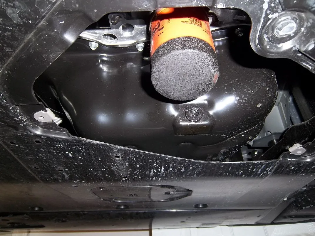 First remove the filter. Before putting on the new filter remove the 8mm drain plug. (Make sure to wait for all the oil to drain out. do this in the am before the car is driven. That way there is no oil up in the head. Being that it is 0W oil it should take approx one beer to completely drain out.) Snug up the plug. I say snug cause it has a aluminum washer that can get easily distorted if tightened too tight. Then replace with your choice of filter making sure to oil up the gasket before installation and hand tighten.