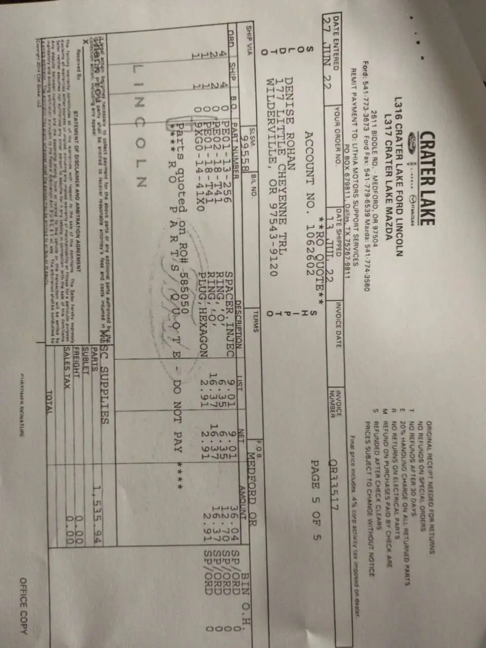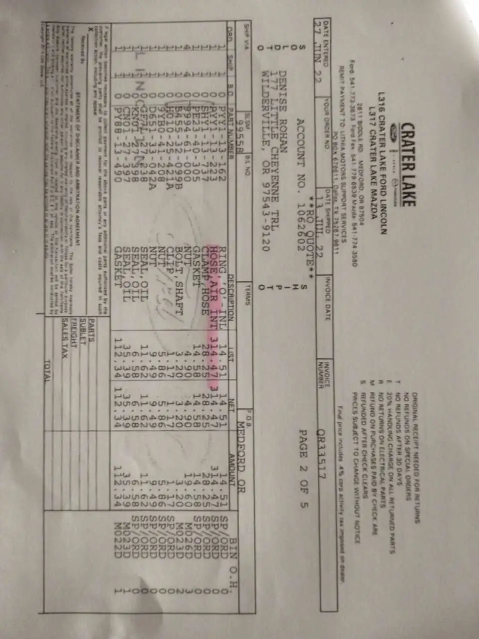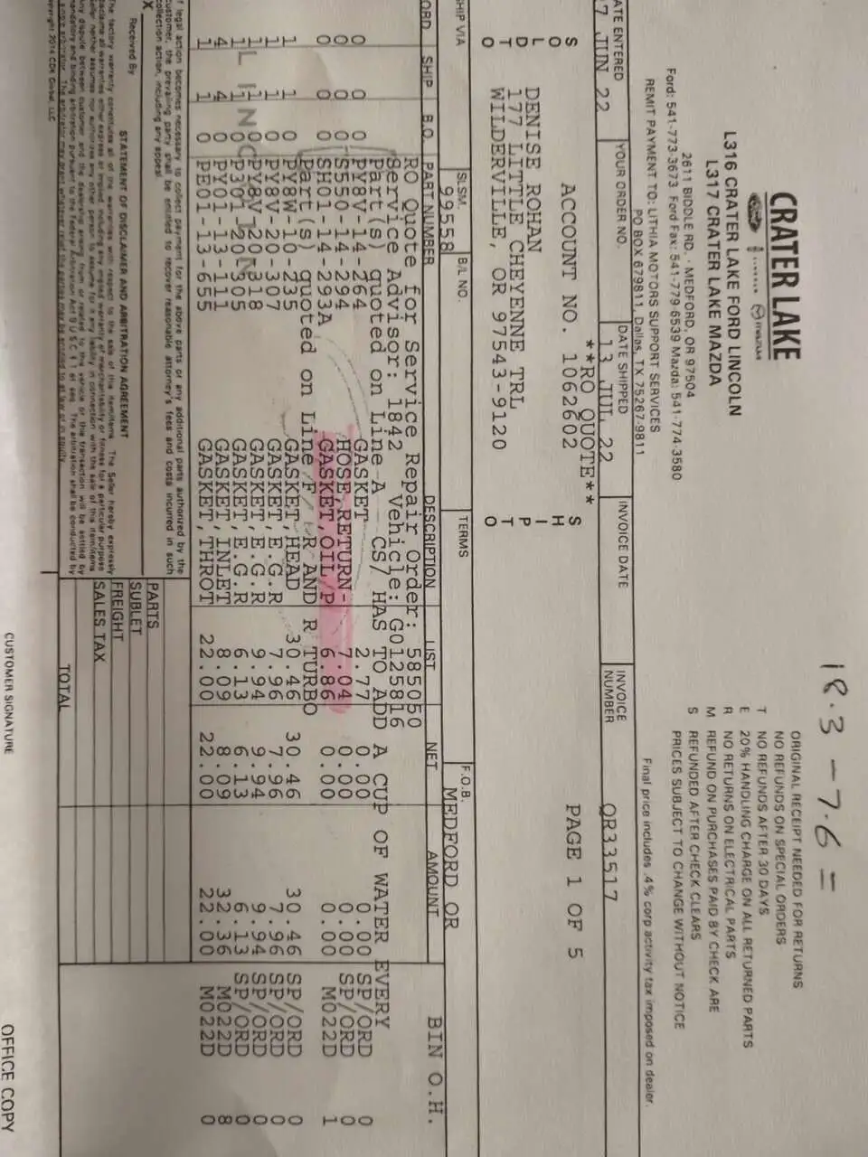 Might want to edit your personal info out of those. I agree with @jal142 as well. Sounds like a lot of parts, but all could be deteriorated or otherwise unusable. $3600 in labor seems very high thoughHere are the 5 pages of parts for $1,500 to repair head gasket quoted at $5,100