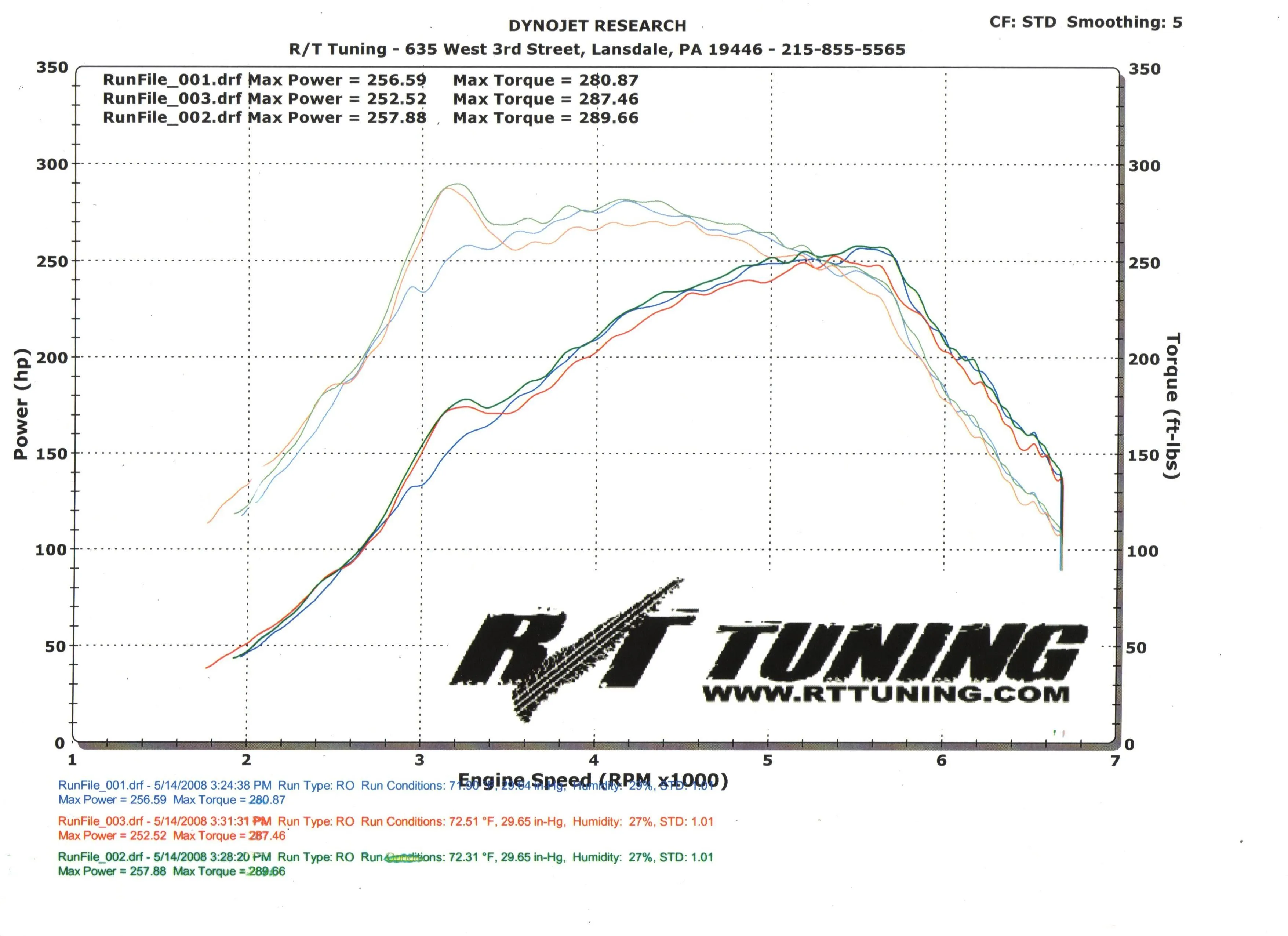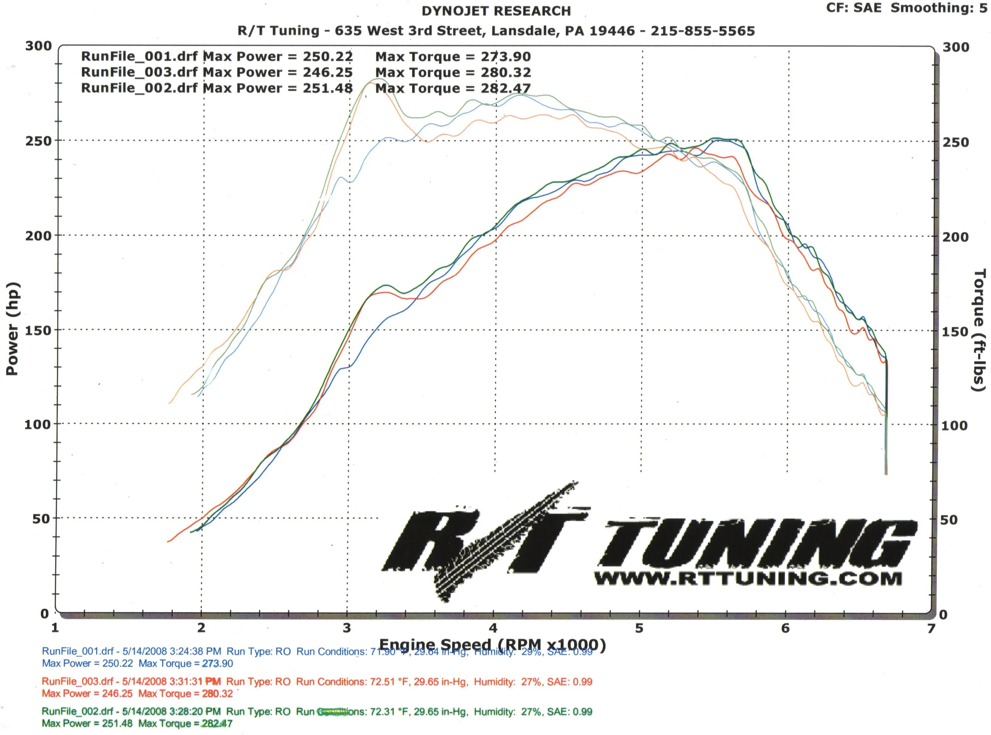 i was in the area so i decided to see if Vince at RT Tuning in Lansdale, PA could throw me on his dynojet so i could see a curve. I can't wait until there is a viable tuning interface for this thing. I'll go right to Evans Tuning in PA and have Jeff throw this thing on his dynapack and tune away. The a/f up top leaves SO much potential, and there is just some general fine tuning that could be done to make things smoother.