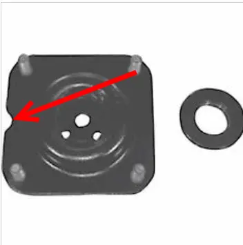 On the front strut mount there is a notch in the edge of the mount. Which direction does this notch point to?