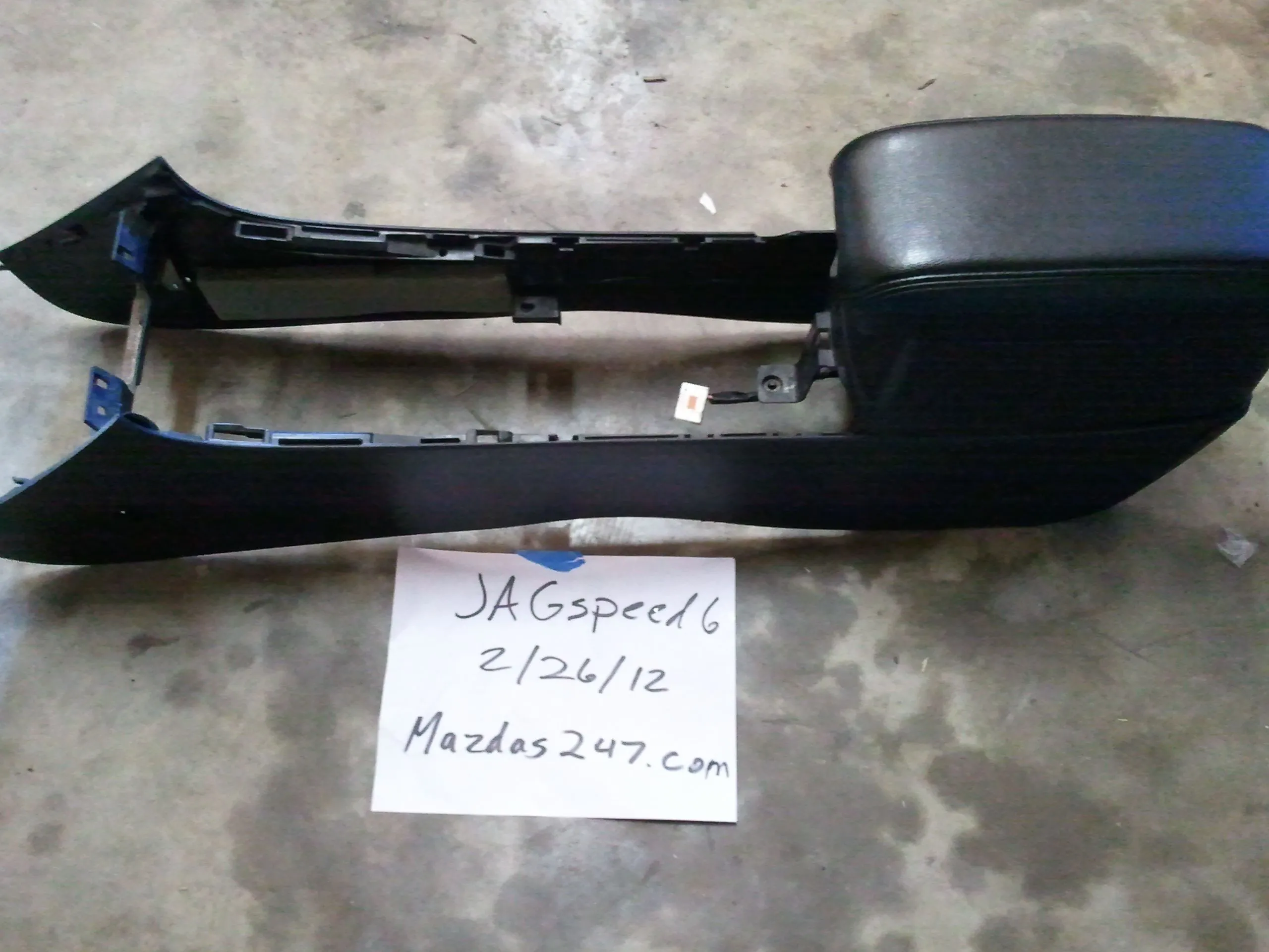 I am selling a mazdaspeed rear bumper without exhaust inserts. There is a crack in the paint that is about 4in. in length. I am asking $250 shipped for the bumper. Also I am selling the side pieces of the center console/armrest, this has a 2-3in. crack on the passenger side. Asking $50 plus shipping for it.
