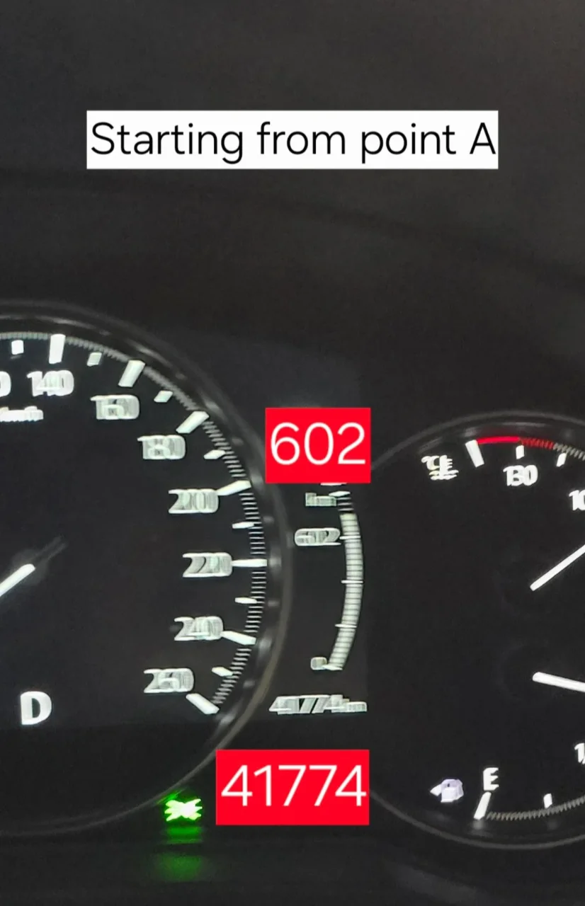 If vou see, point A to B Odometer - (41804- 41774) = 30kms Fuel range- (602-560) = 42kms