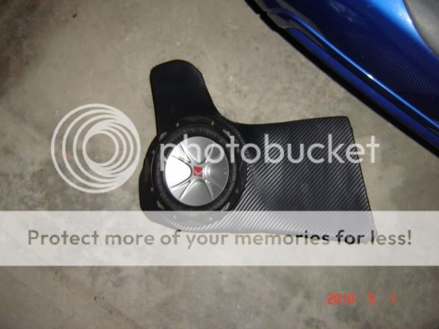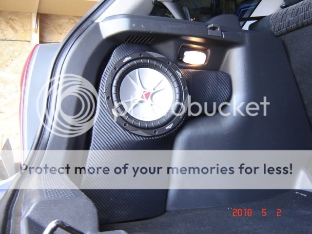 Looks nice dude, I did a stealh box build back in the fall with an 8" sub as well. I love it! For some reason I get some interferance thru the wires and my sub kinda moves witht eh RPMs, changed grounding points like 5 times and ran the cables in different locations to no avail but it sounds good and the bass hit pretty hard for a little 8". If you do the box right you won't have to block the light that's back there. Let me know what you do to mount that b**** in place.