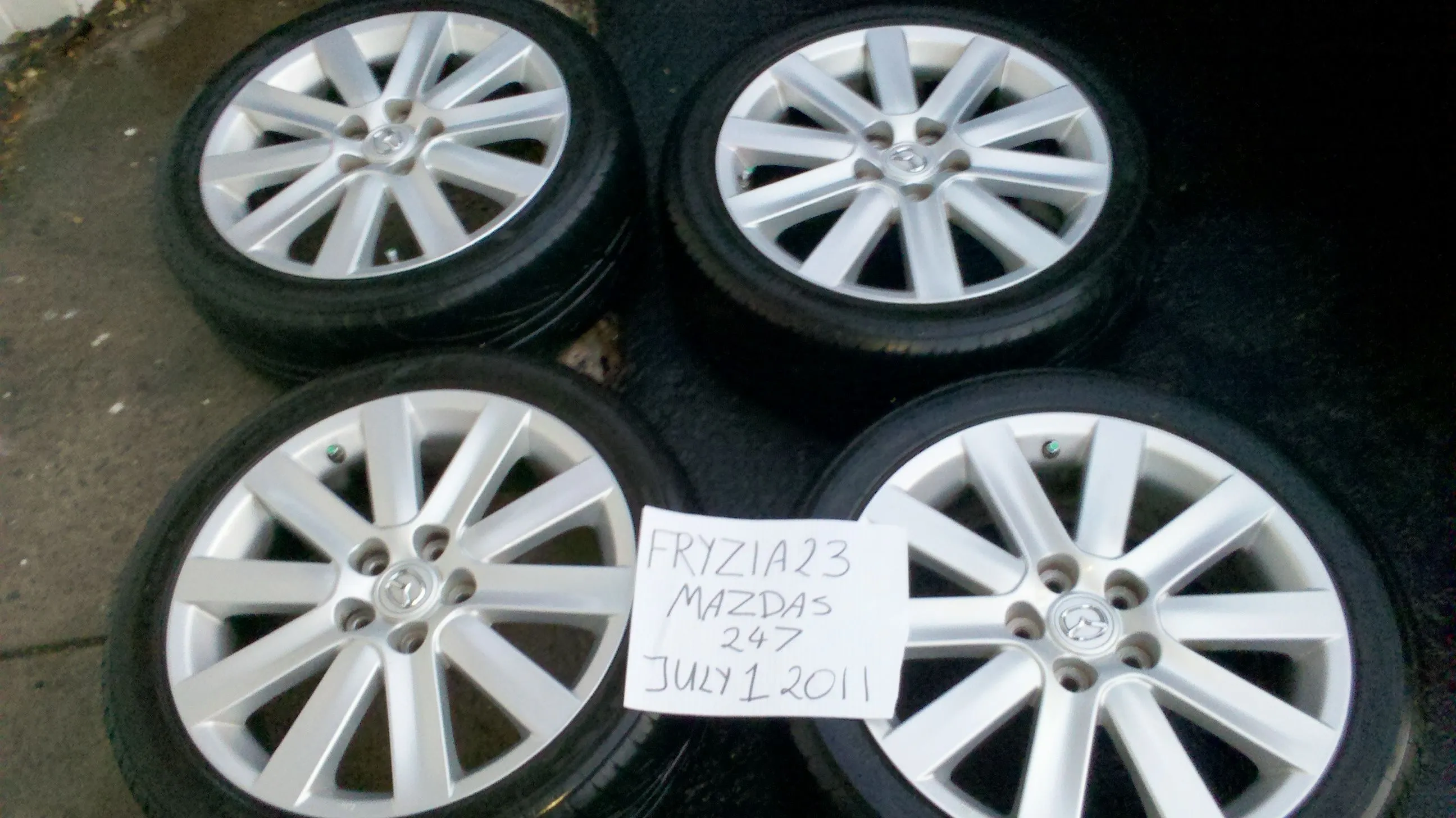 I have set for sale with stock size tires (Nankang Ultra sport NS-II) and TPMS filled with nitrogen. Wheels are in MINT condition. No curb rashes at all. Tires still have a lot of tread left in them. Looking to get $400 preferably local pickup. Shipping would be on the buyer's expense.