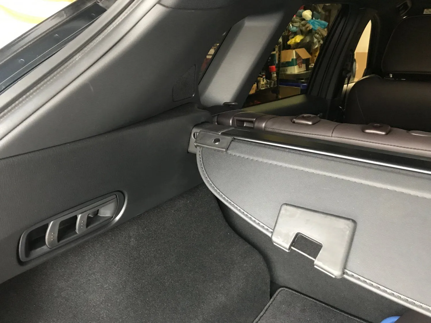 Note in the photos below that the vertical pillar clad in the OEM black plastic also photographs much lighter than the exact same horizontal OEM black plastic only a few inches away. The horizontal color is almost identical to that of the cargo cover. Photos taken a few minutes ago on an overcast day.