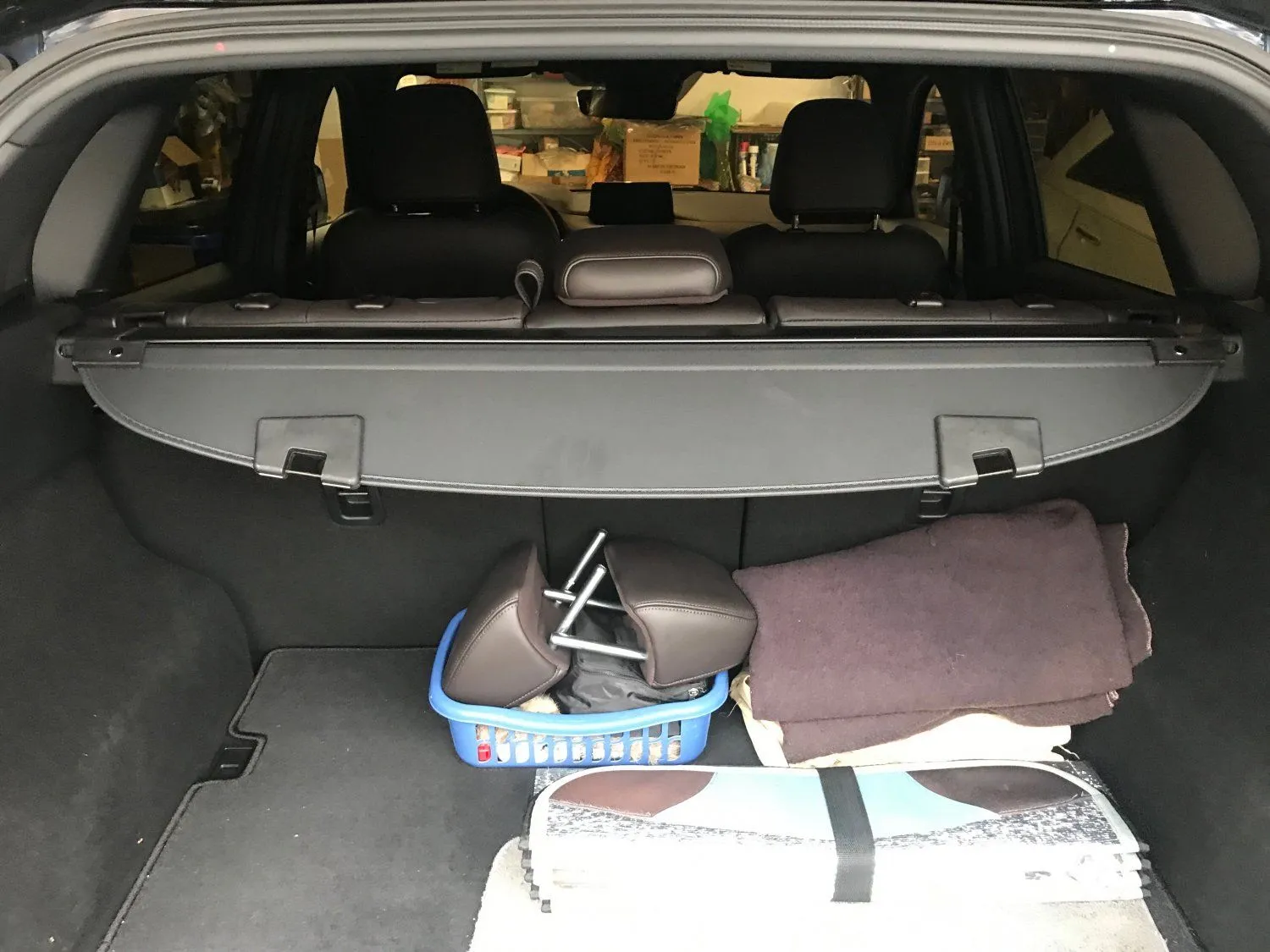 One of the things I like about this cargo cover is that there are spring-loaded hinged flaps on the forward-facing side that cover the space between the cover and the back of the back seats, to prevent most small things from slipping down between the two. I don't remember if the Mazda-branded cargo cover has these.