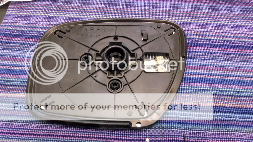 Step 2: Take it apart. Put the mirror on a nice soft towel and take it apart. Take note of where the attachment points are on the new glass so you know where to pull without snapping the old ones. Push the glass on the outside edge all the way in until you can get your fingers behind the glass on the inside edge. Try to feel where the smaller ball joint is and get fingers on either side and pull from that point. If you pull from the edge of the glass, IT WILL BREAK. Trust me from past experience, you cannot pull from anywhere but where the ball joints are. The glass WILL break 100%. Once the joint pops, you will need to pull the other 2 joints. You will be freaked out that the glass will break but follow my advice and it will be fine.