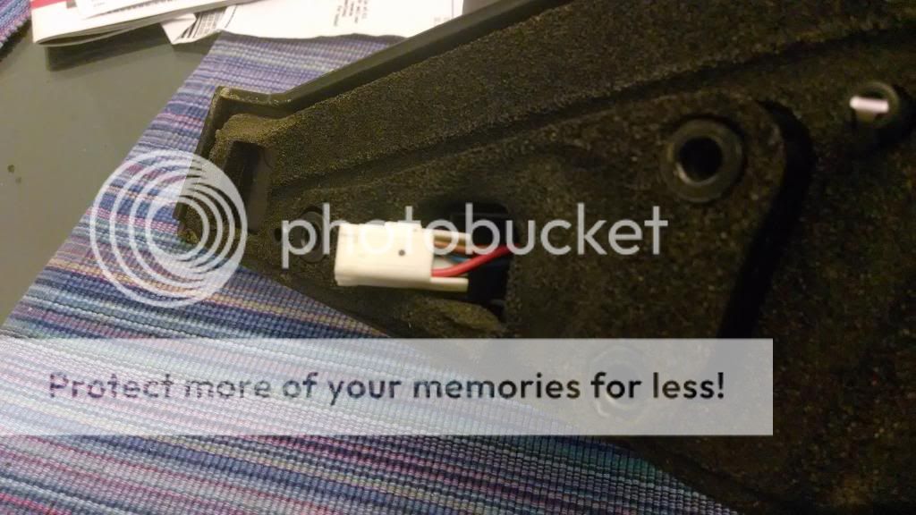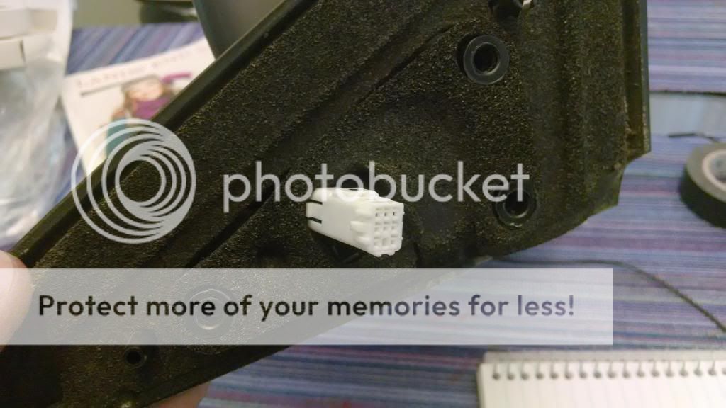 Step 1: Get the mirror off. The tweeter covers the mirror bolts so just pull it straight off. Make sure the 2 black plastic clips came out and are solidly in their holders so they dont fall back into the door later (sucked). There are 3 bolts that hold the mirror on so take those out while supporting the mirror from the outside. It wont fall off but better safe than sorry. Take the mirror off from outside and then unclip the harness connector. Make note of how the wires lay into the mirror housing so the clip can go back where it came from. I tried unplugging it before I unscrewed it but I couldn't get the clip to separate.