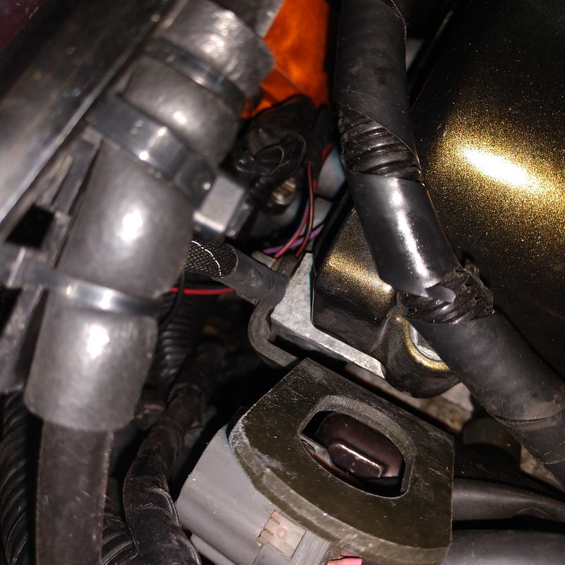 Recently there was a thread on the turbo Miata site about issues with the NB alternator with its internal voltage regulator and how it has caused problems with aftermarket ECUs. Since I have a Megasquirt and would prefer not to fry an $800 part I figured it would be a good preventive measure to ground things. Initially I was looking on Amazon for some ground straps but then remembered I had a grounding wire kit on my Mazdaspeed6 that I removed before selling. Went and picked that up yesterday, then after some measuring determined which two wires I could best use. I connected the alternator at its mounting bolt closest to the block (two birds with one stone kind of thing) and ran that to a chassis ground. For the head, I ran the wire from the rear lifting point to a chassis ground. I did have to hog out the holes on the connectors I attached to the engine/head side bolts as they were a bit too small. Dremel tool to the rescue! Here are pictures of what I’m talking about, the ground wires have black insulation with thin white stripes: