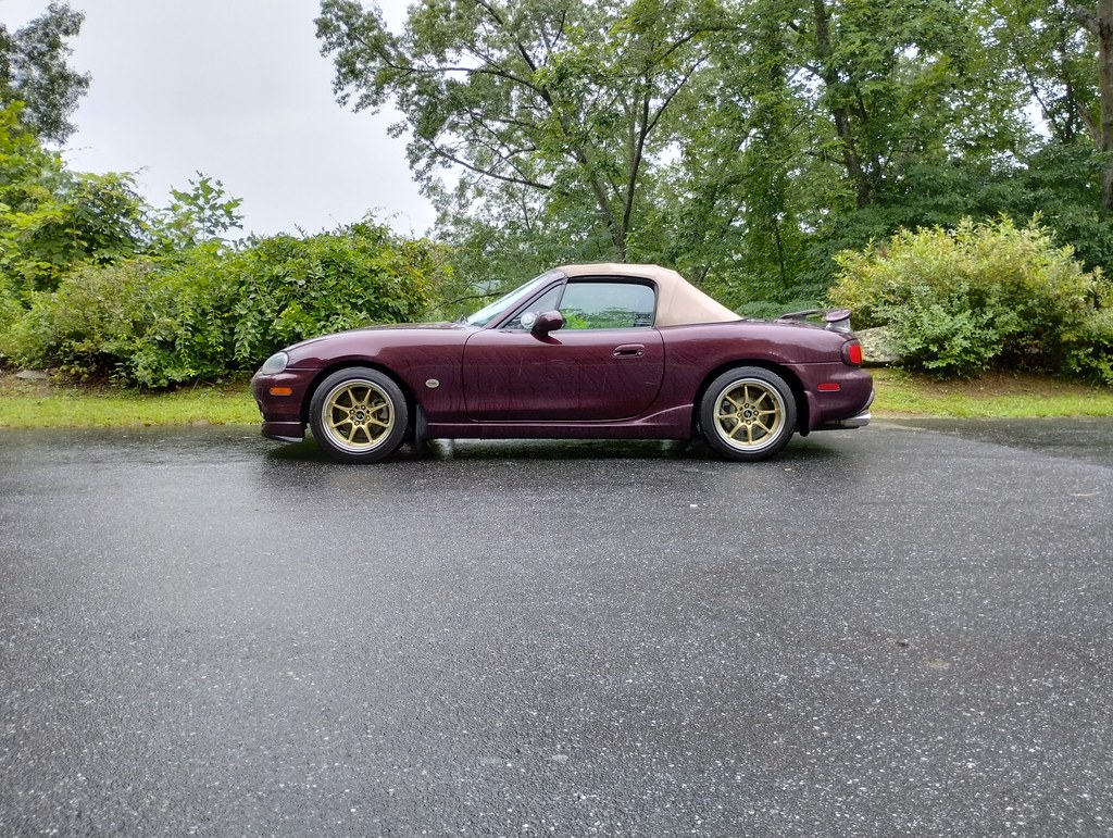While this isn’t actually anything to do with a build, it’s my thread so what the hell! Gave her a bath this morning. Threw on some wax once she had dried off. Changed the clutch fluid, it had been a while so what was in there was pretty janky. Cleaned the interior and then treated everything with an appropriate chemical. Pulled the windblocker off and cleaned it, also cleaned the boot cover. Buffed out the wax once dry. Glued down the driver’s floor mat heel pad that was lifting up (I have a new set of mats but trying to extend these a bit longer). Shampooed both floor mats, vacuumed them once dry and they are now back in the car. Used the last of my RaggTop protectant on the top. Pretty much just need to clean all the glass, put her in the sun to make sure I removed all the wax and then fill up the gas tank. I’m charging my GoPro right now, haven’t used it for some years so interested to see if it will still work.