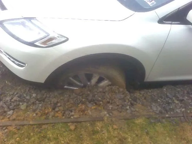 Well I went to see one of my customers today. I pull into the parking lot and pull in the same area I always do. Well guess what?? They just had a water line replaced. They did not rope off the area or put any cones around the area either. You could not tell any work had been done in the parking lot..........and the pictures explain the rest of the story!! I had to climb out of the passenger side and had to be towed out. Now I have to file a claim against my customer to have the front wheel repaired or replaced. My CX-9 is only 2 months old with 5,000 miles. What a mess!! Oh and someone already dinged my door too!!(pissed)